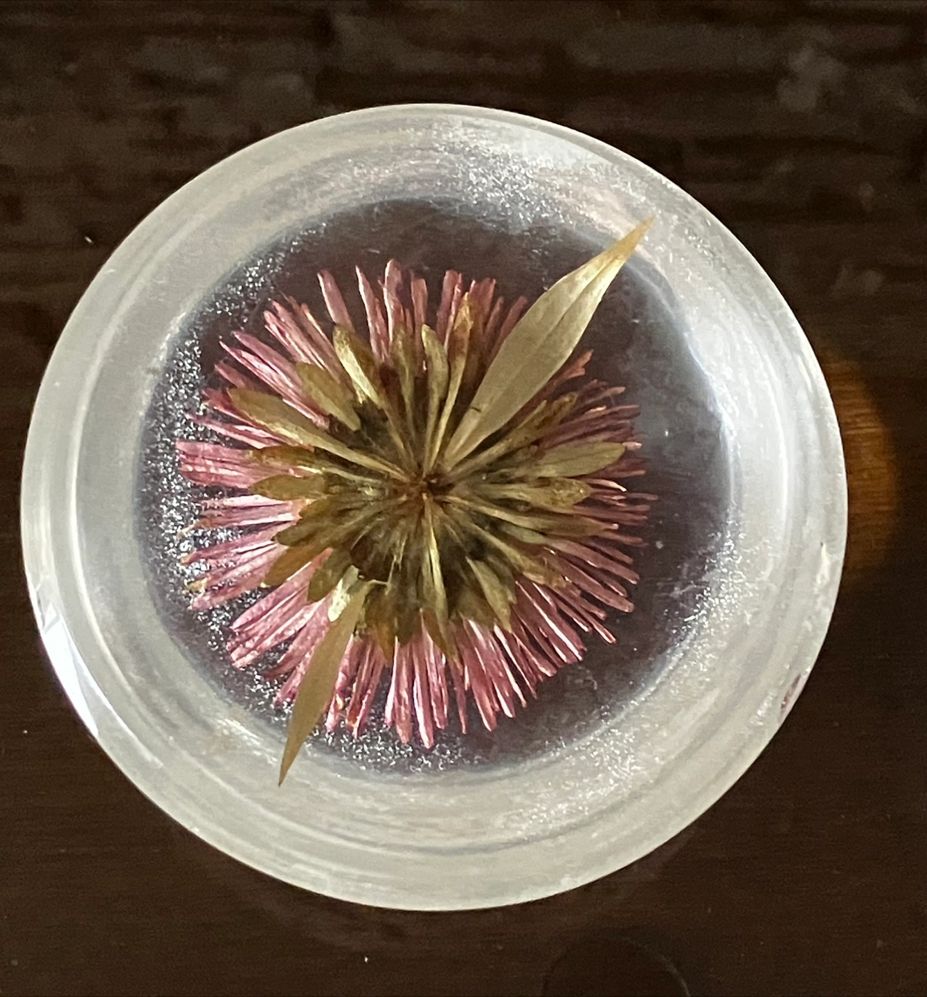 Vintage Flower paperweight in acrylic - presse papier en resine