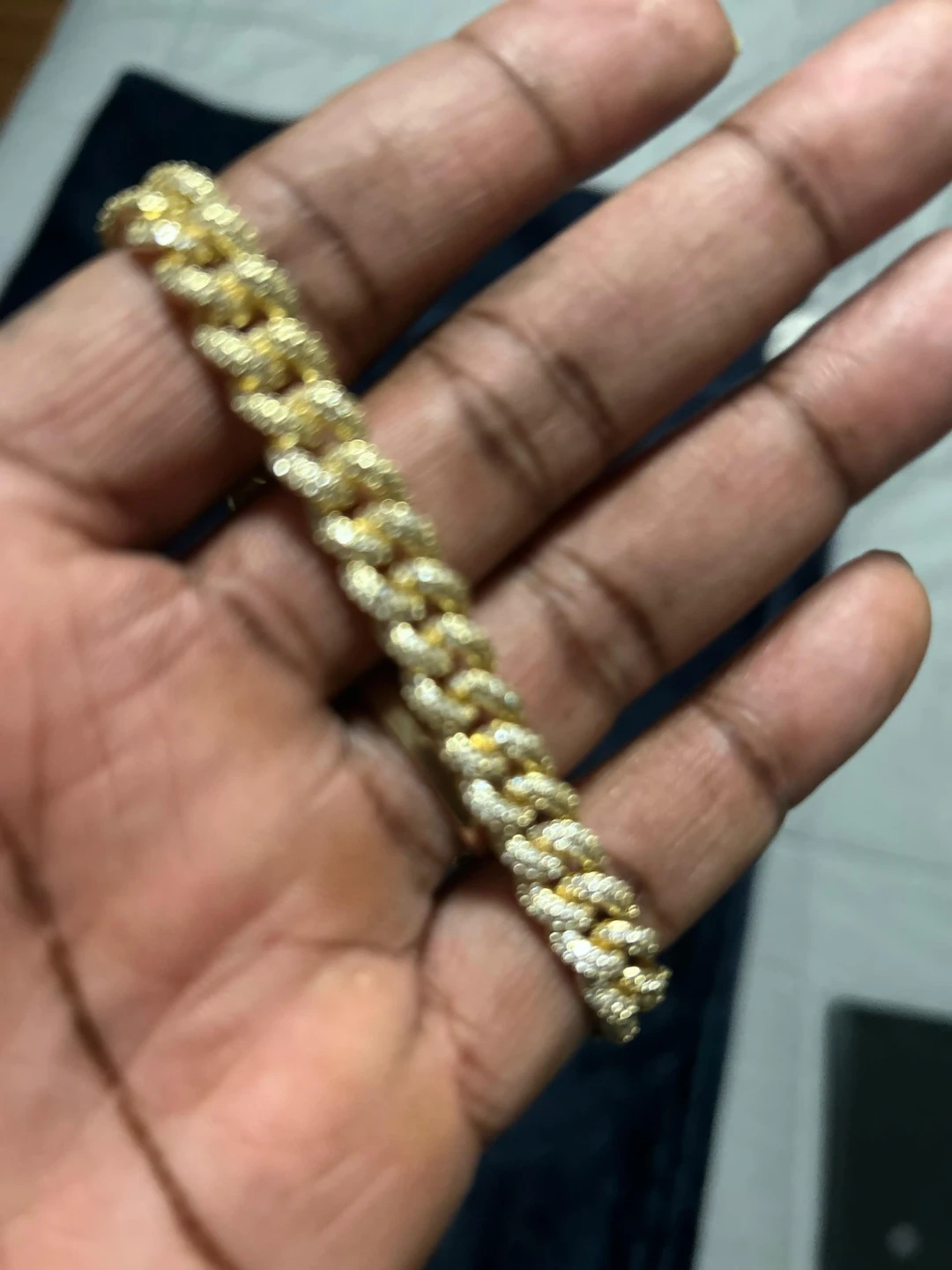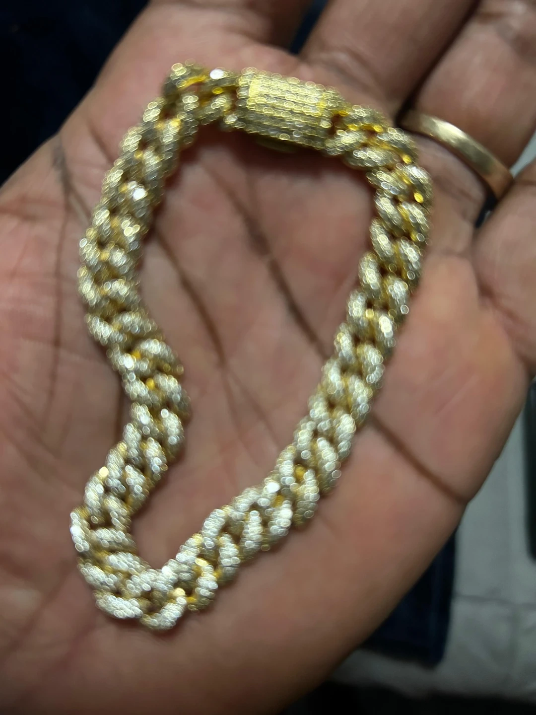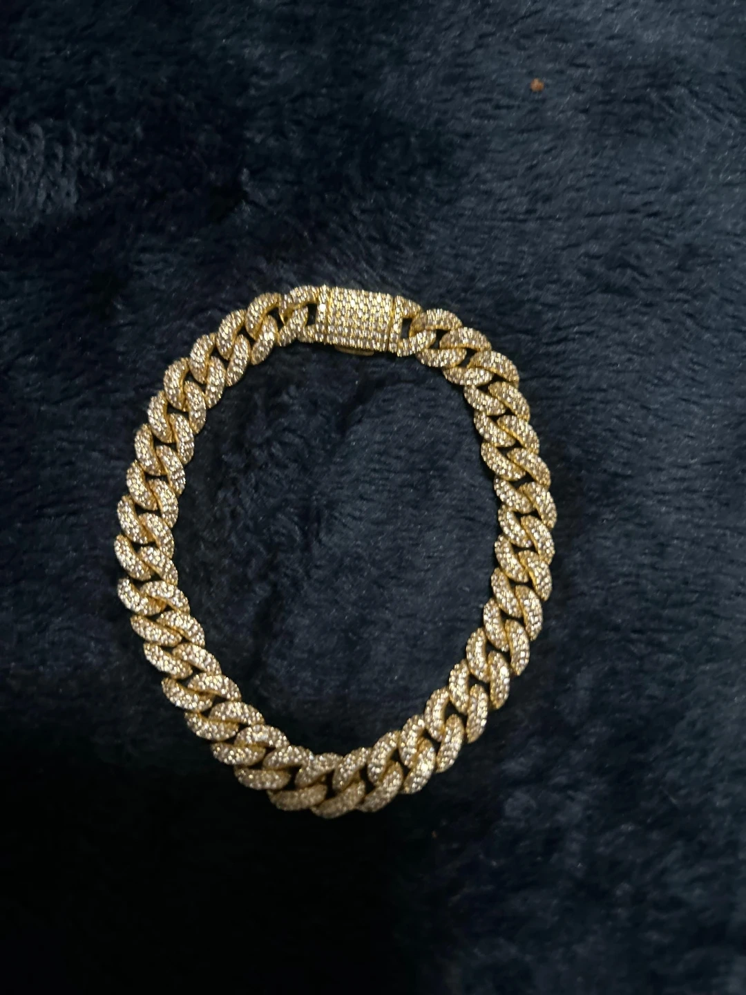 Gold Cuban Link Bracelet with Rhinestones