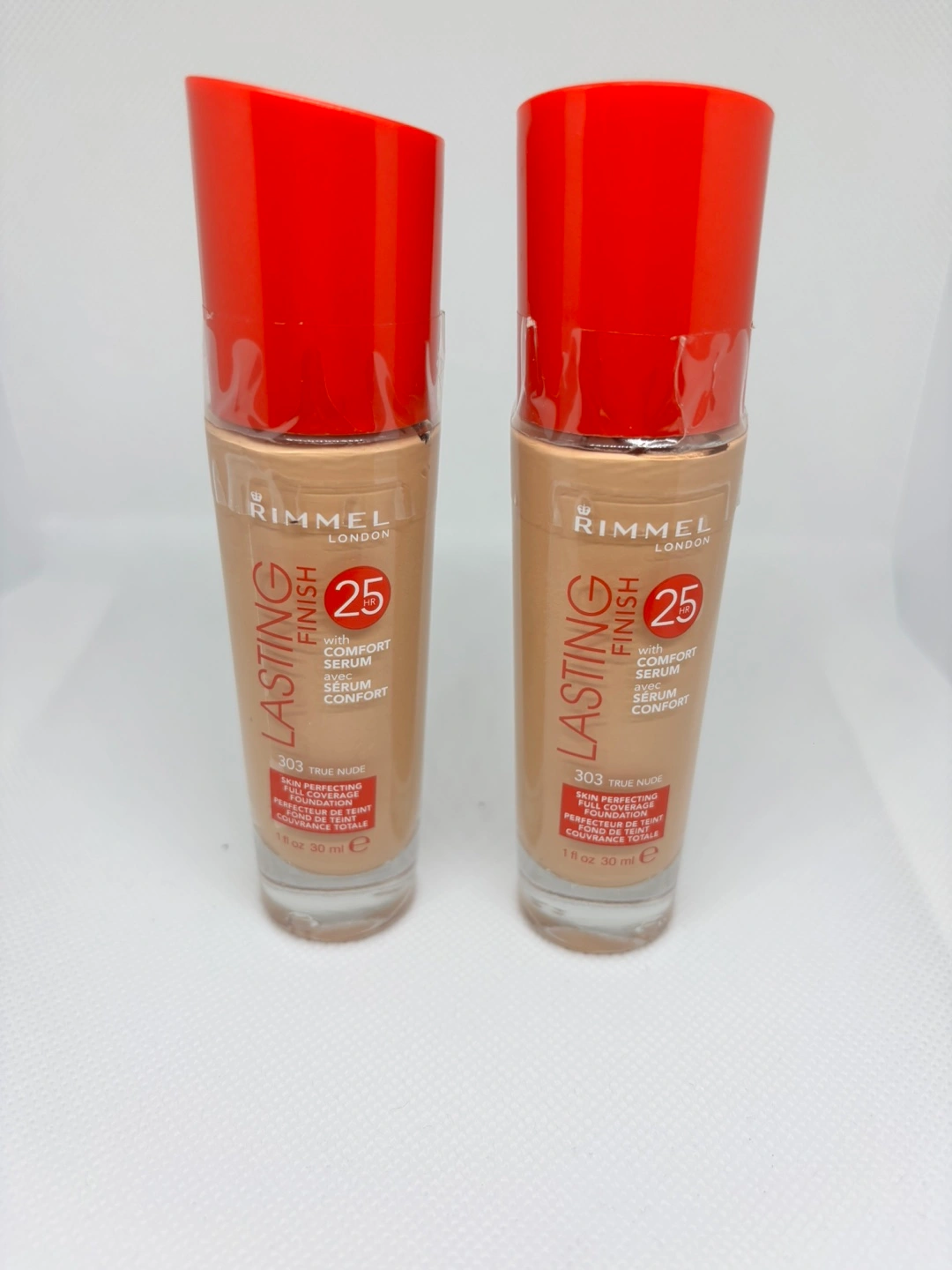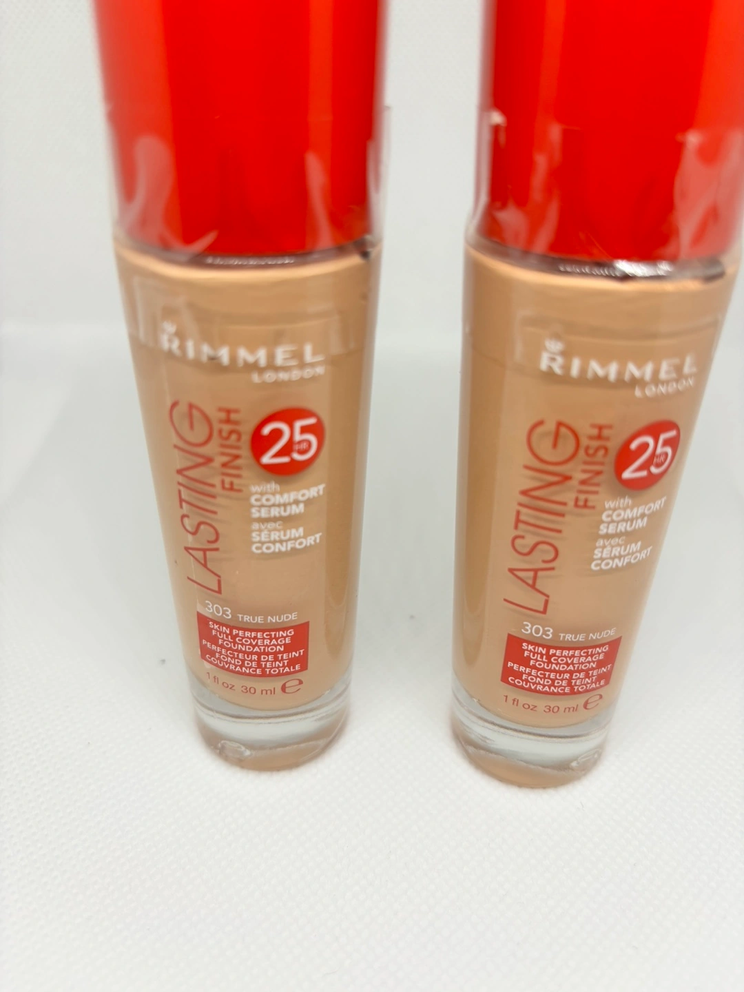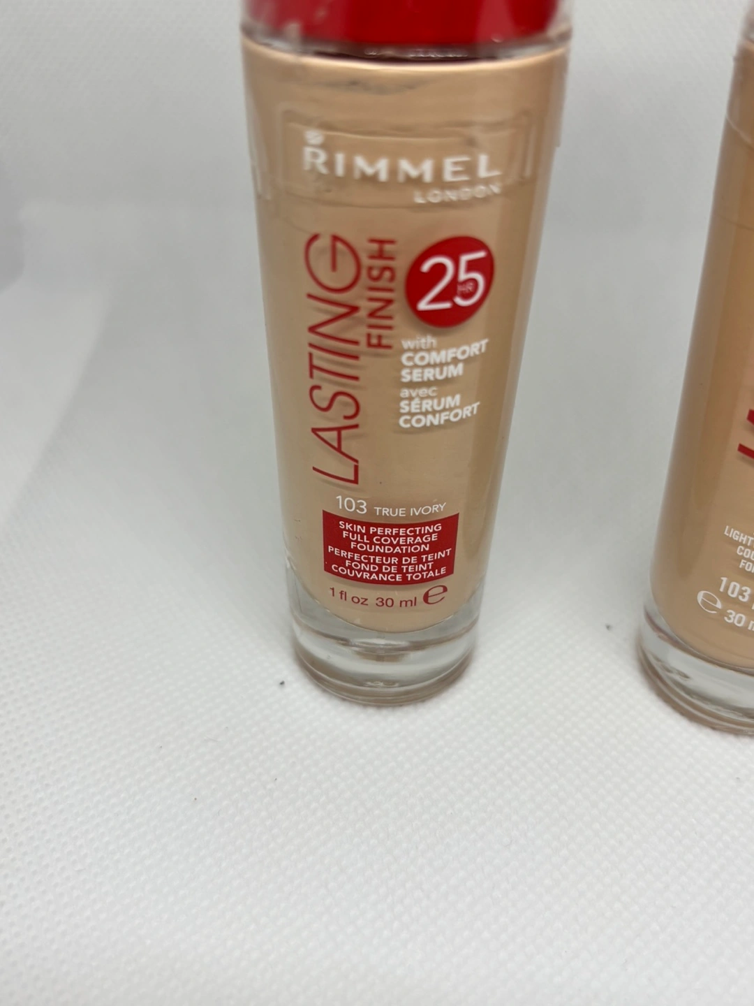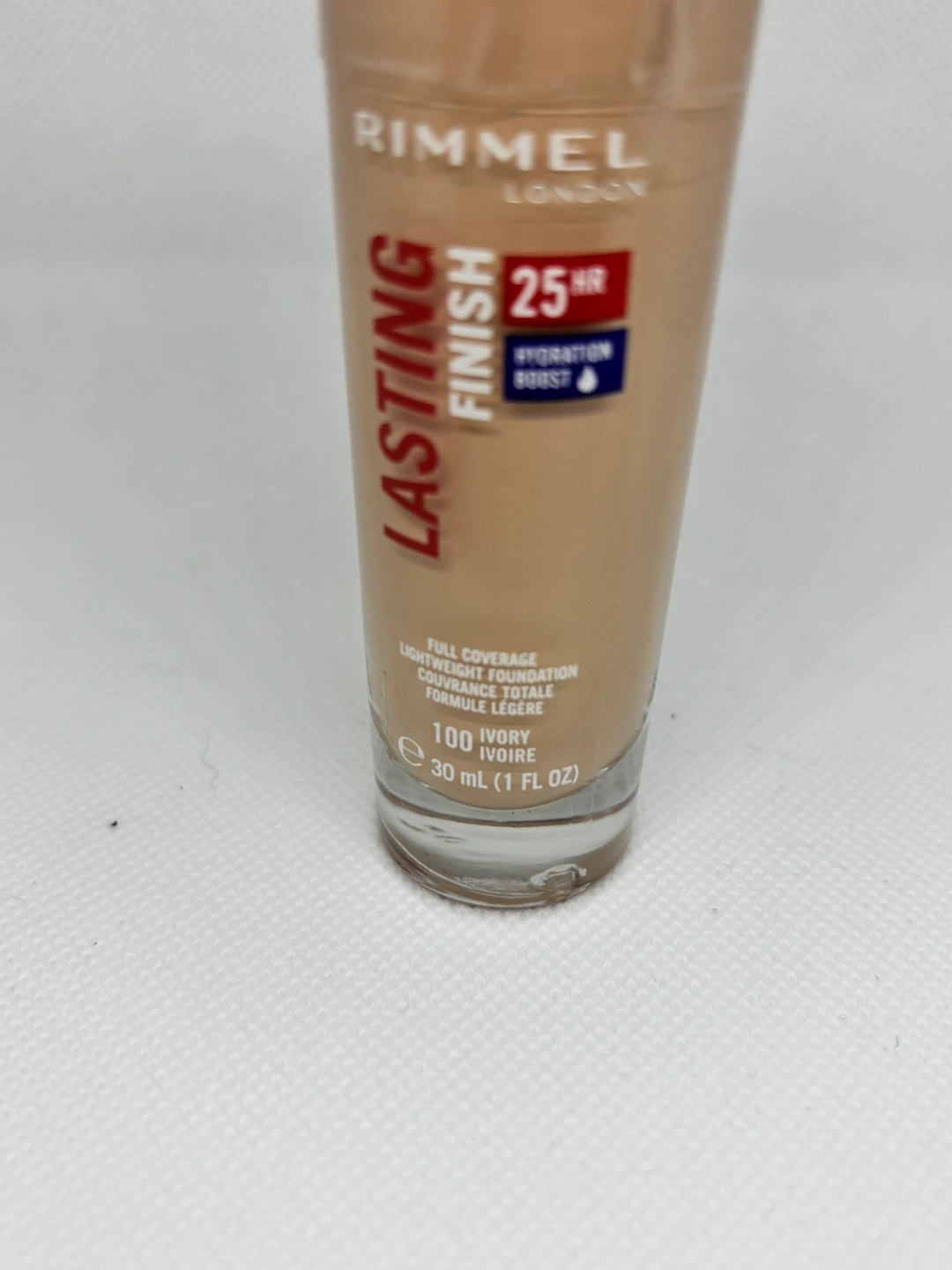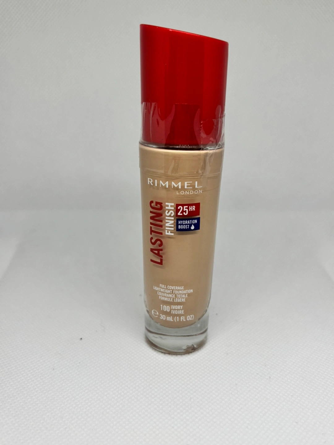 Lightweight foundation, in a tall glass bottle. Features a red cap. It provides full coverage. This foundation could be a great addition to your makeup routine, offering a comforting ritual of self-care.