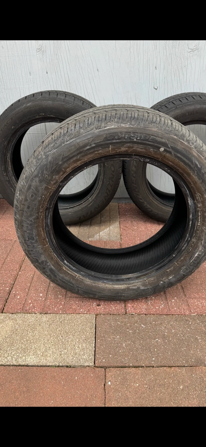 Set of four tires and 1 spare .They appear to be in good condition. These tires could be a great asset in ensuring a safe ride for you and your passengers.