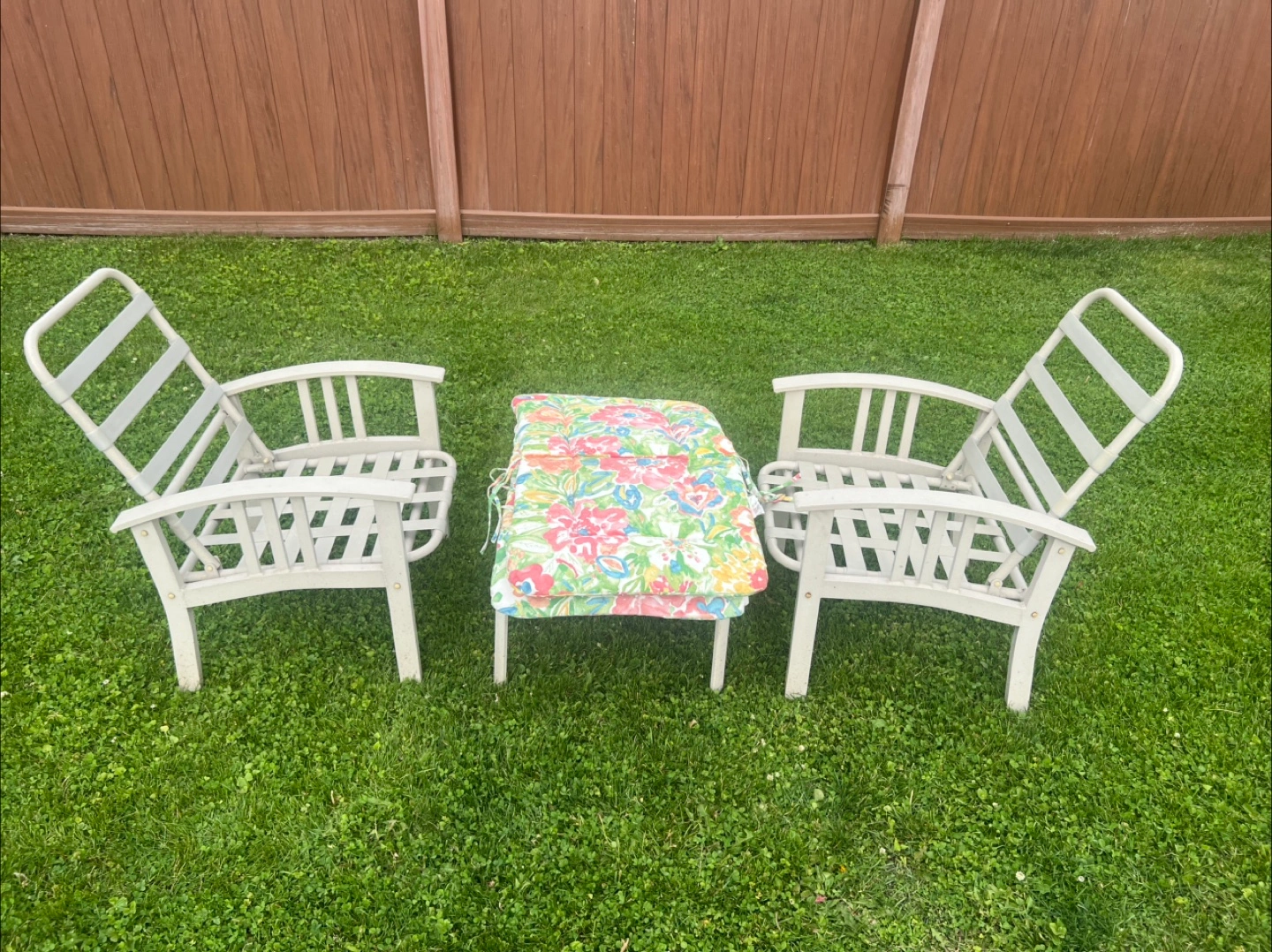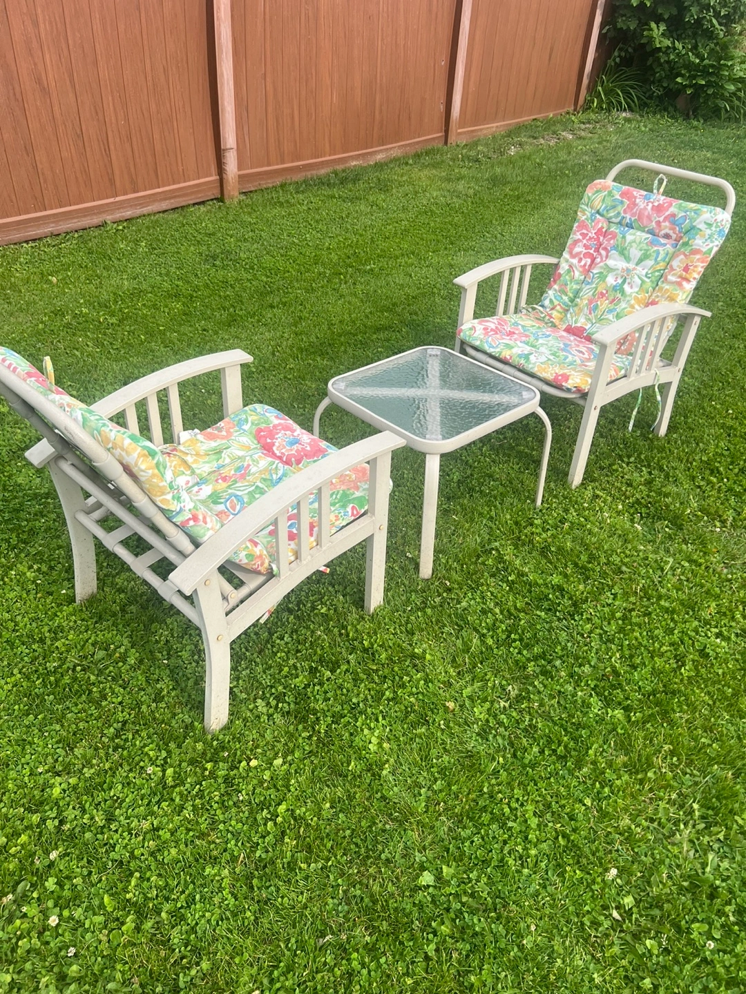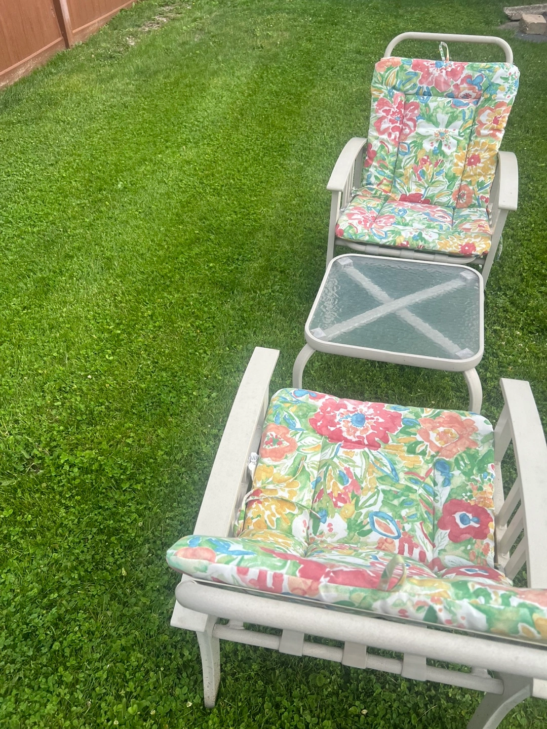 Set of 2 aluminum chairs w/cushion for Outdoor/ Patio and small table.