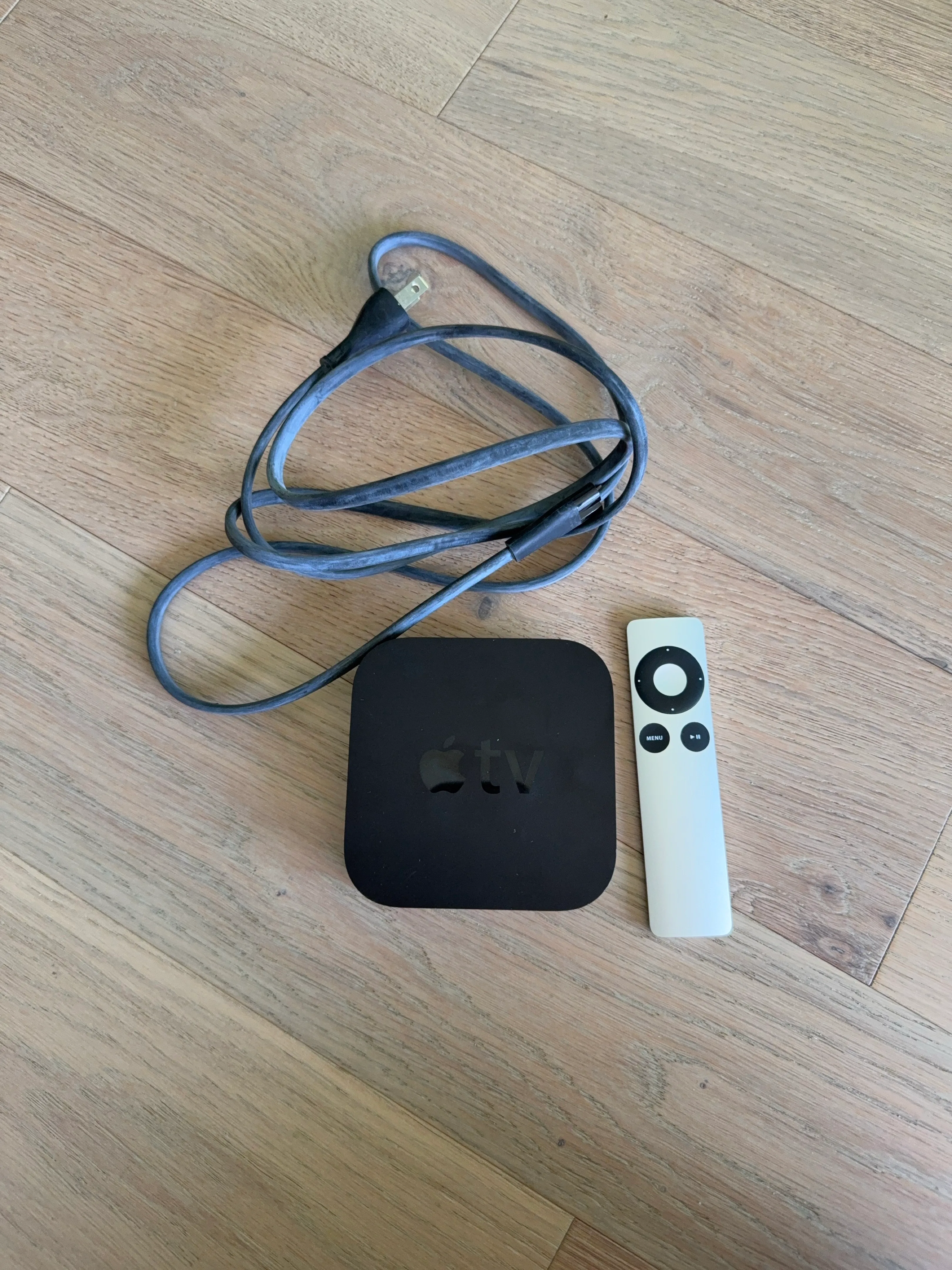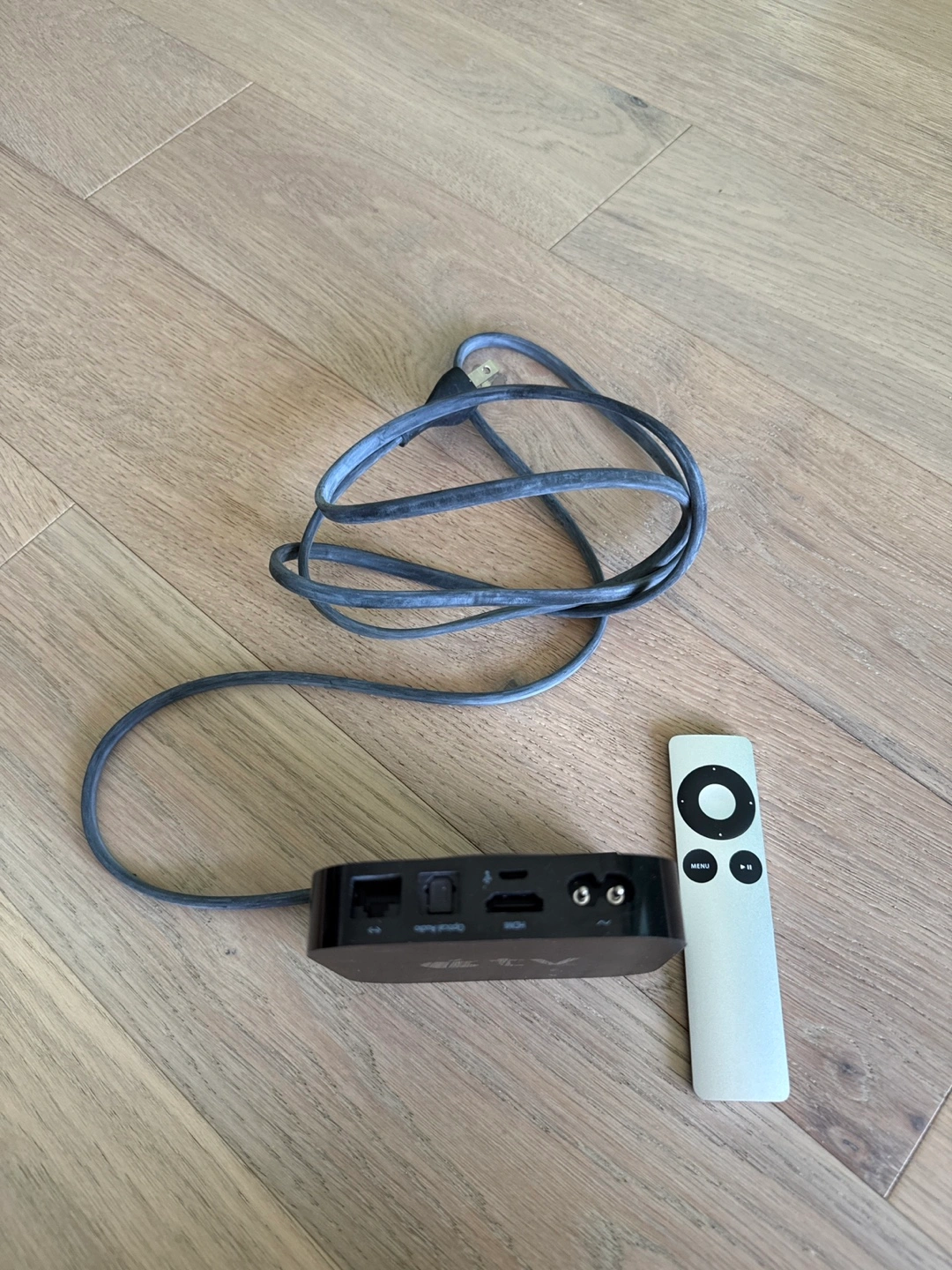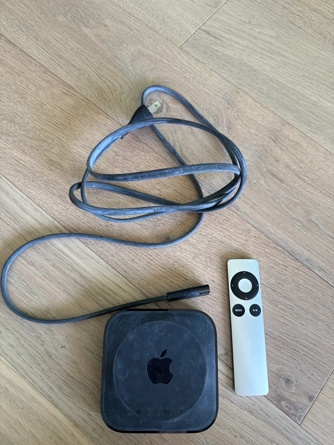 Model A1469. Comes with remote and a power cord. Features a small black box with the Apple logo. You can relax and enjoy streaming your favourite shows, movies, and more.