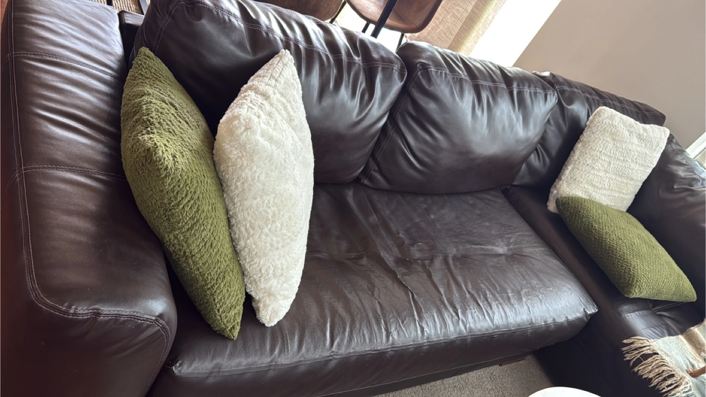 Buy & SellBrown Leather Couch with PillowsBrown Leather Couch with Pillows$50Couch Features multiple pillows in shades of green and white. Very comfortable.EstadoOkayWHERE TO MEETCatalpa GardenView MapSELLERverifiedLorenaEdgewater872 reviews1 chats·0 favorites·71 viewsSEND CHAT TO SELLERHi Lorena! I’m interested in your listing.Hi Lorena! I’m interested in your listing.Get the Karrot app to chatSign In to chat