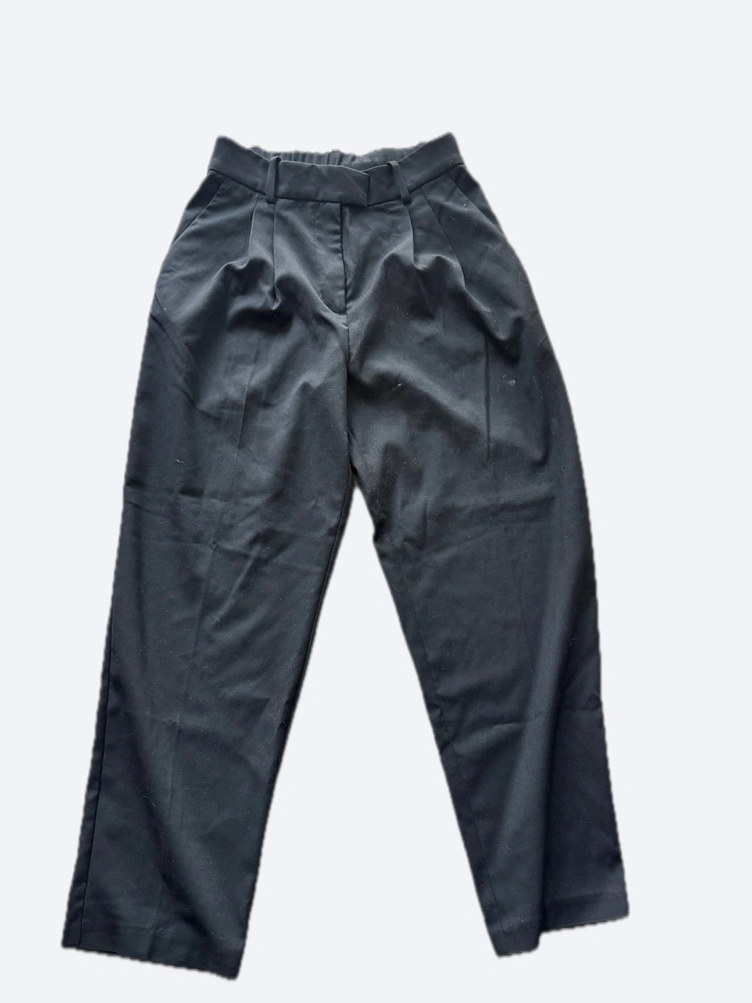 Dark colour dress pants. Featuring a pleated front. Perfect for a casual or business look, especially if you want to be comfortable all day.