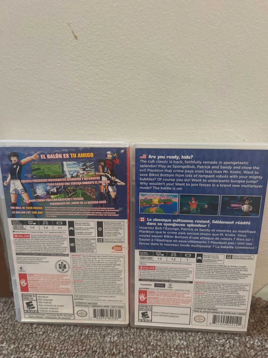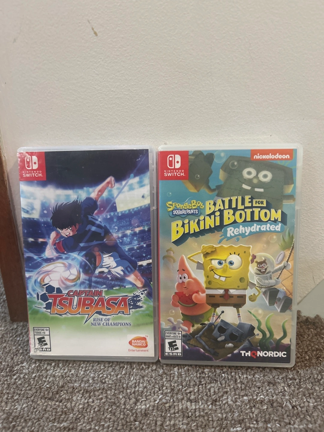 Selling these two Nintendo Switch games together. Featuring Captain Tsubasa and Spongebob Squarepants. A great way to relax while playing your favorite games.