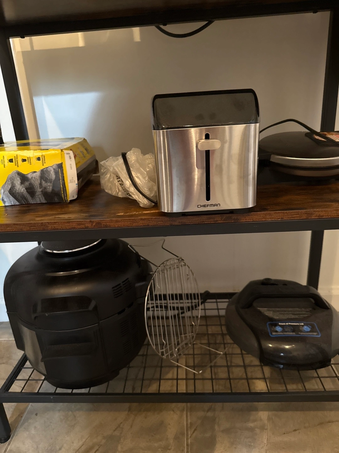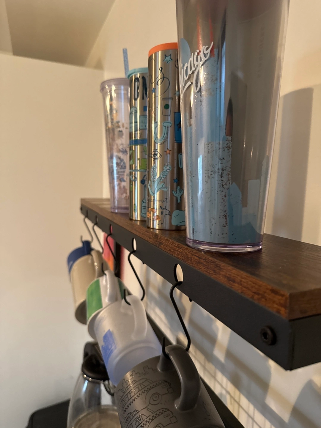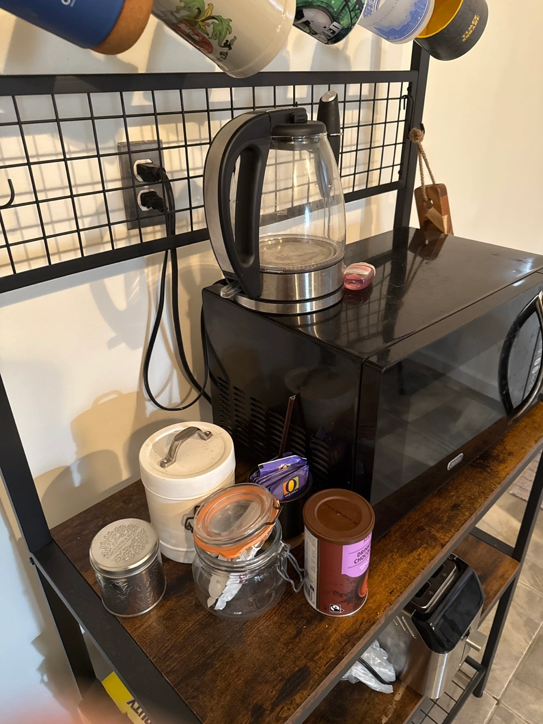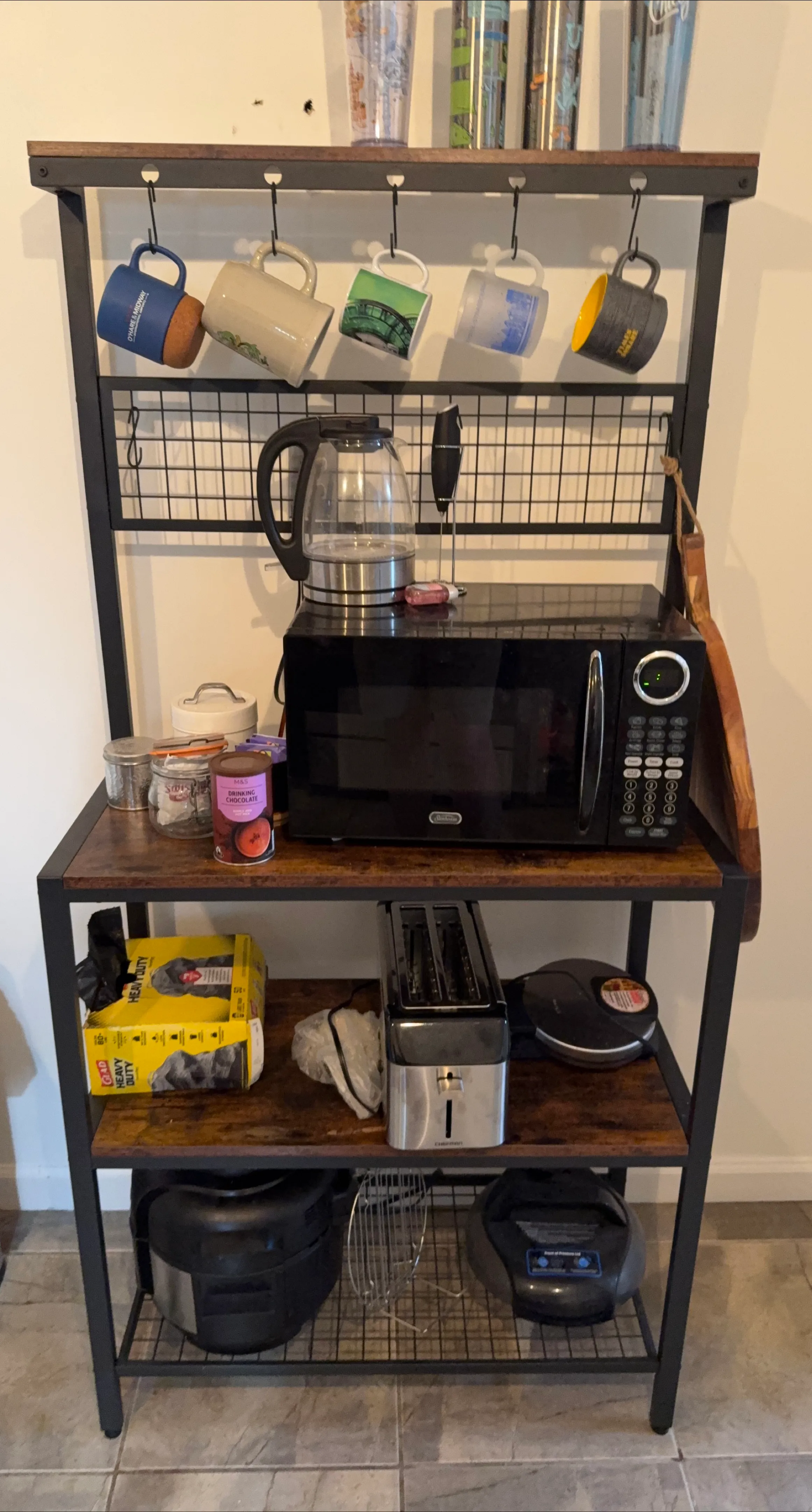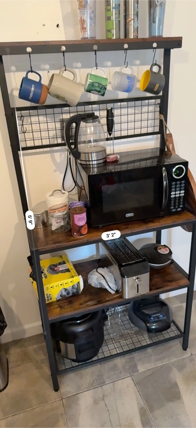 Coffee station and kitchen storage solution! Perfect for hanging mugs, setting up appliances, and storing extra pantry items. Dimensions are found in the photos. $80/OBO