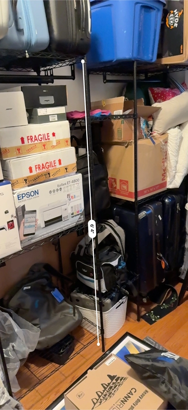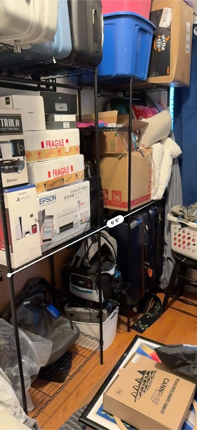 Sturdy, black metal shelving unit. Multiple shelves for storage. A great storage solution that is sure to help organize any space. Easy to disassemble and move.