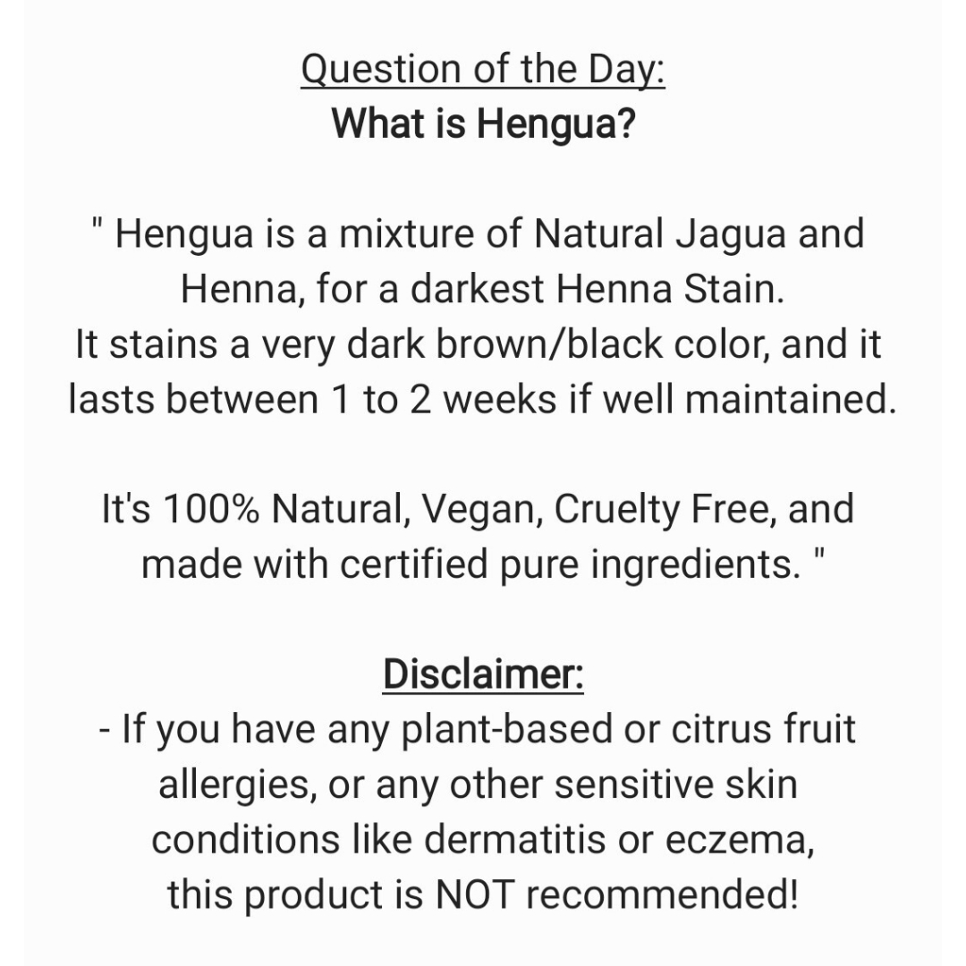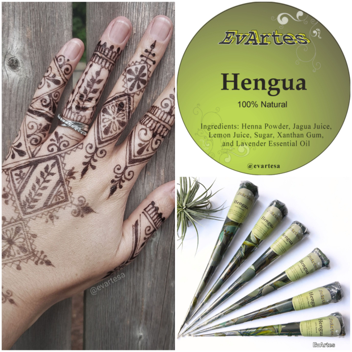 Experience the allure of intricate body art with these 100% Natural Hengua Cones, designed to deliver an ultra dark brown mehndi henna stain that's both captivating and long-lasting for up to 2 weeks. These cones contain a mix of natural jagua juice and henna powder, creating a darkest henna stain.