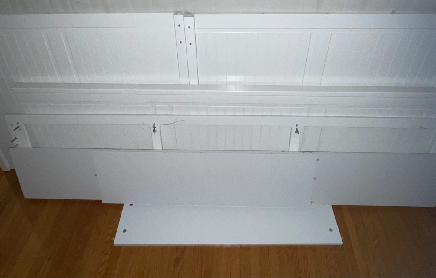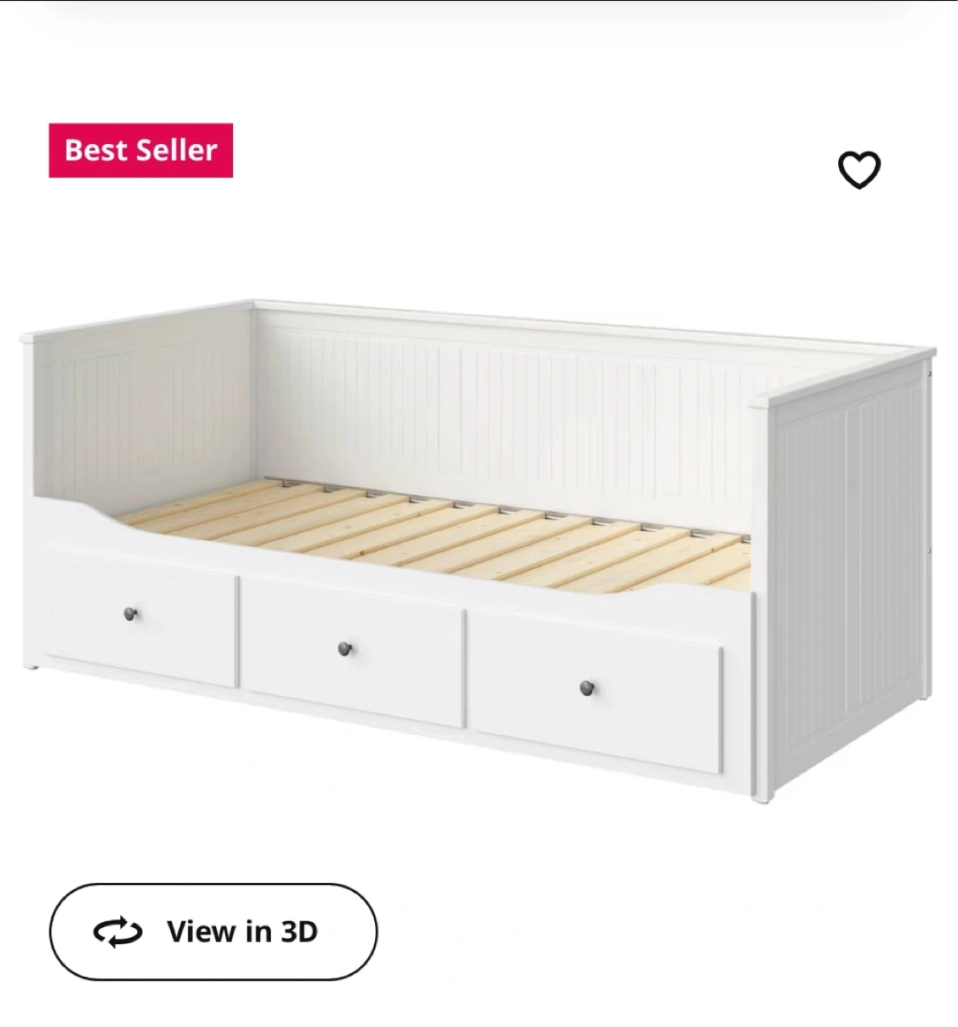 Ikea White daybed with three storage drawers, slatted base, and headboard.