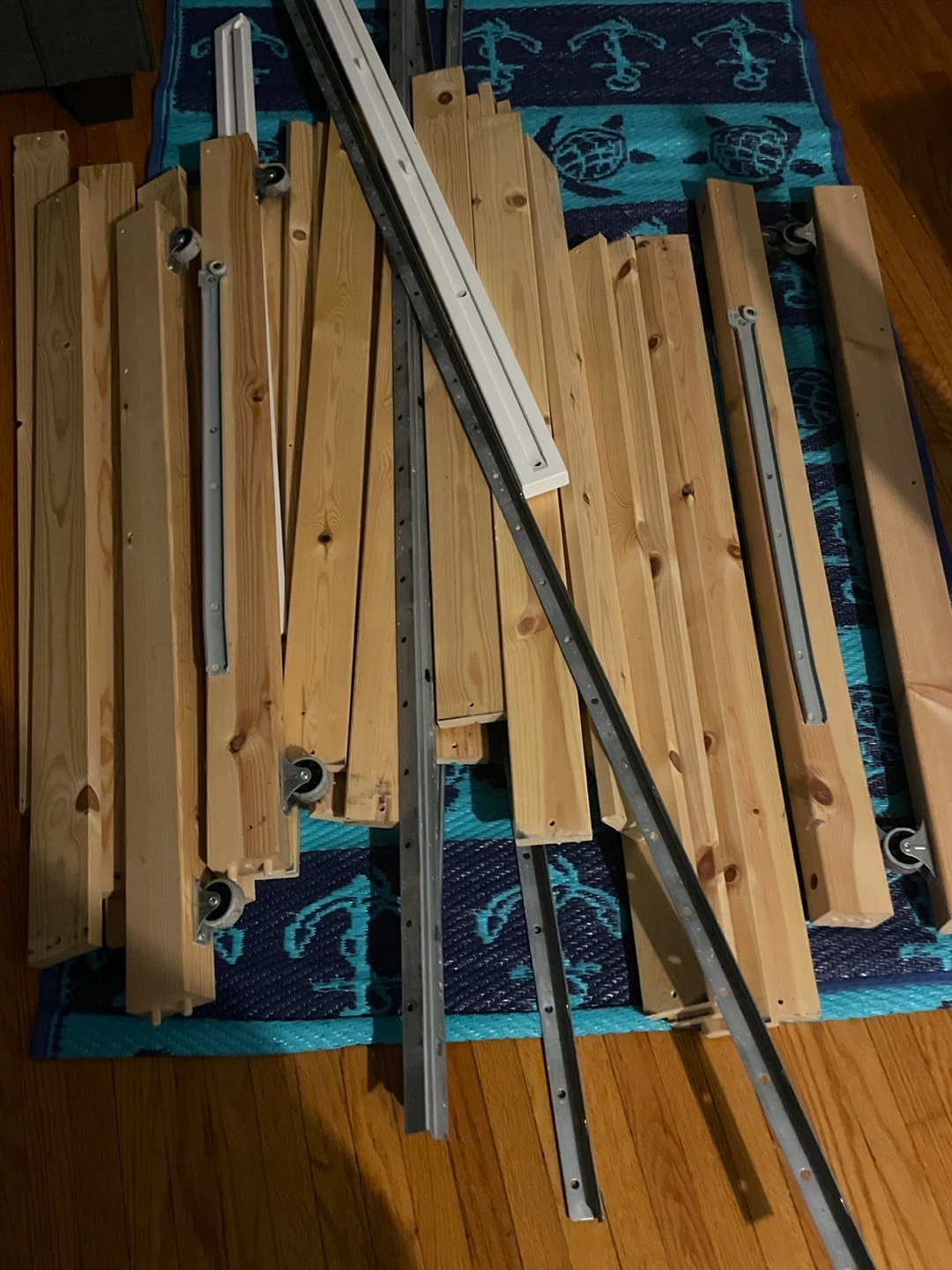 One wooden slab is broken as shown in the picture.. you may need to order wooden block or can use it as a single bed. You may require some extra nuts and screws from Ikea to assemble it, which Ikea can deliver for free though we have most of it. We are using it as a single bed and have no issues.