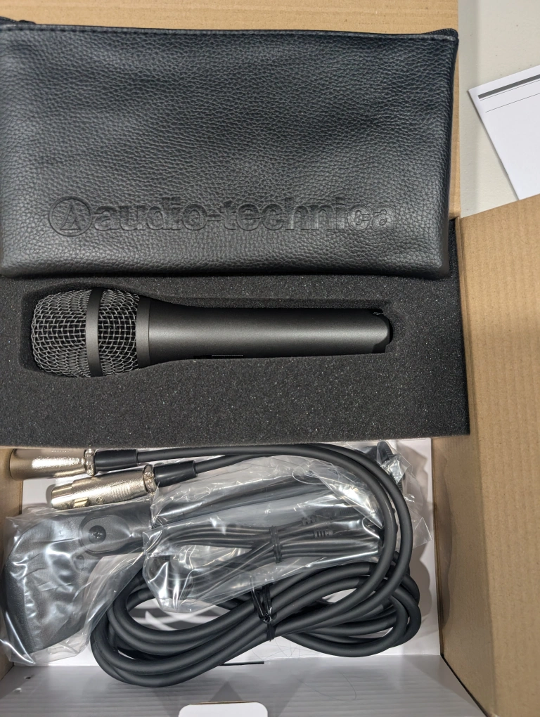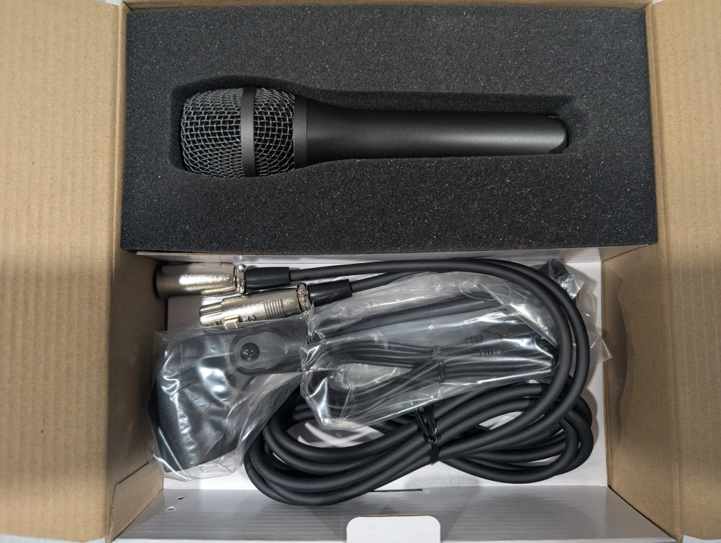 I have a microphone. It comes in a box. The set includes a mic, cables, and a carrying case. You can use this to record some relaxing audio sessions for yourself.