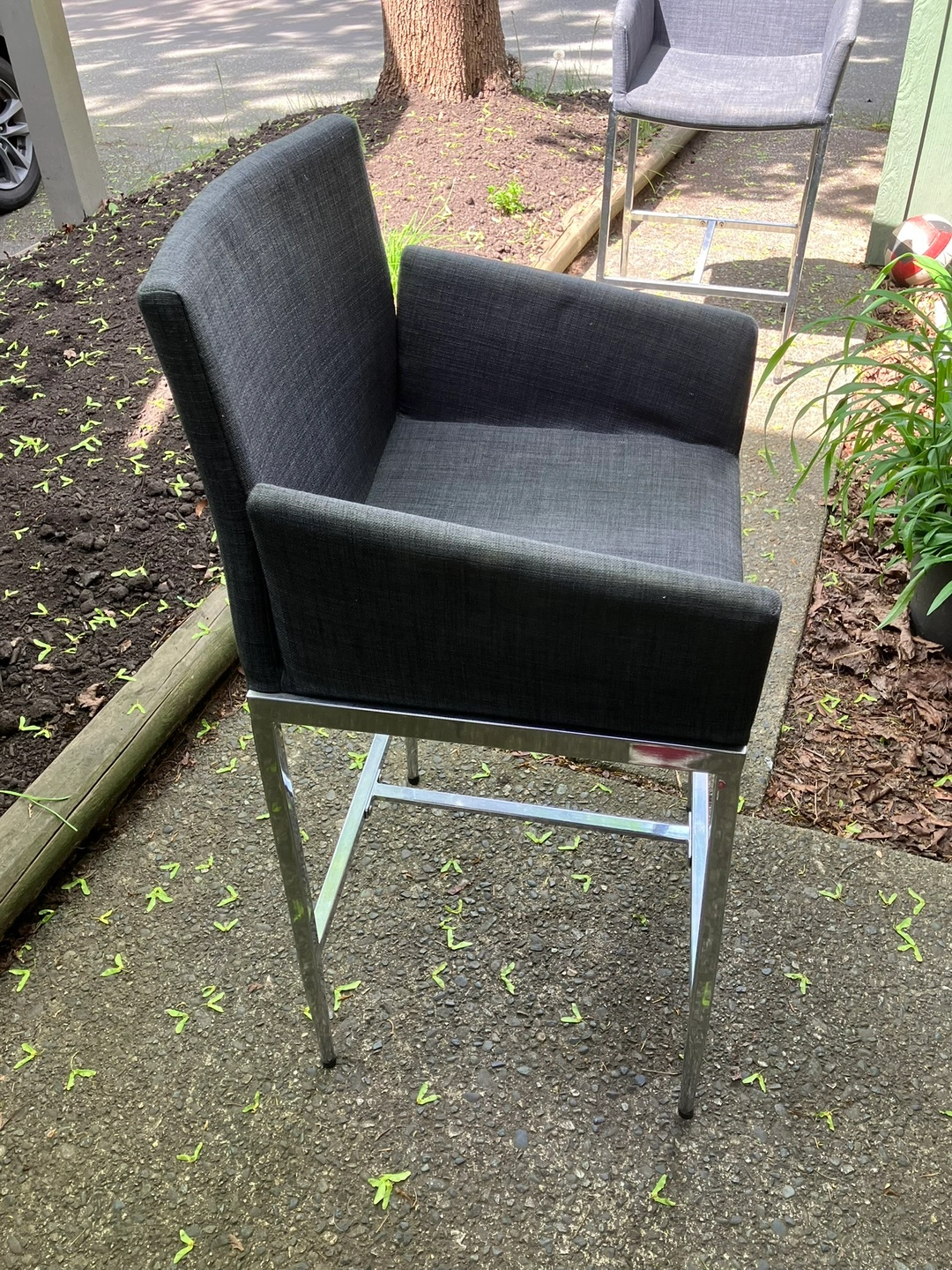 FREE Grey upholstered bar chairs with chrome legs