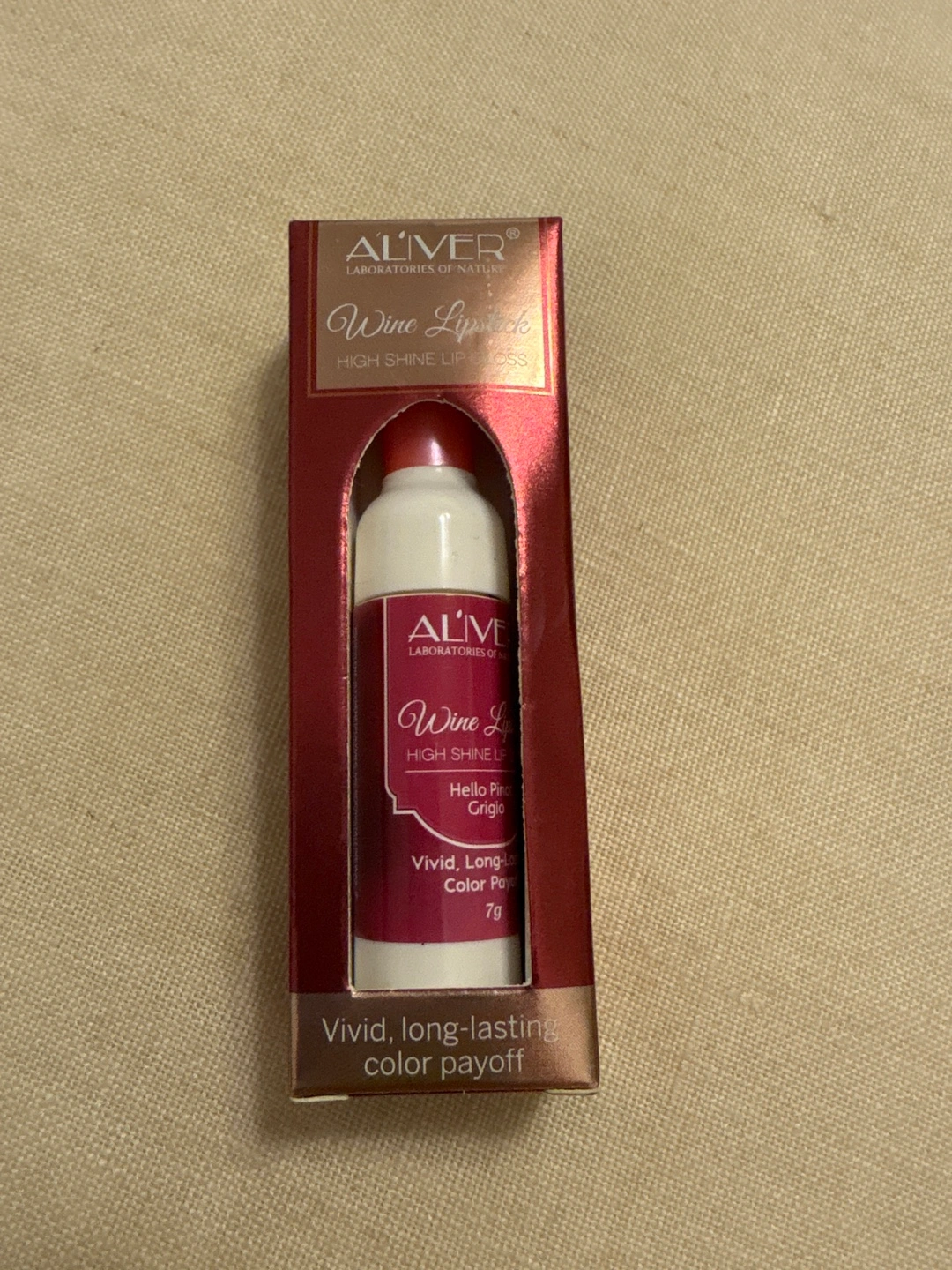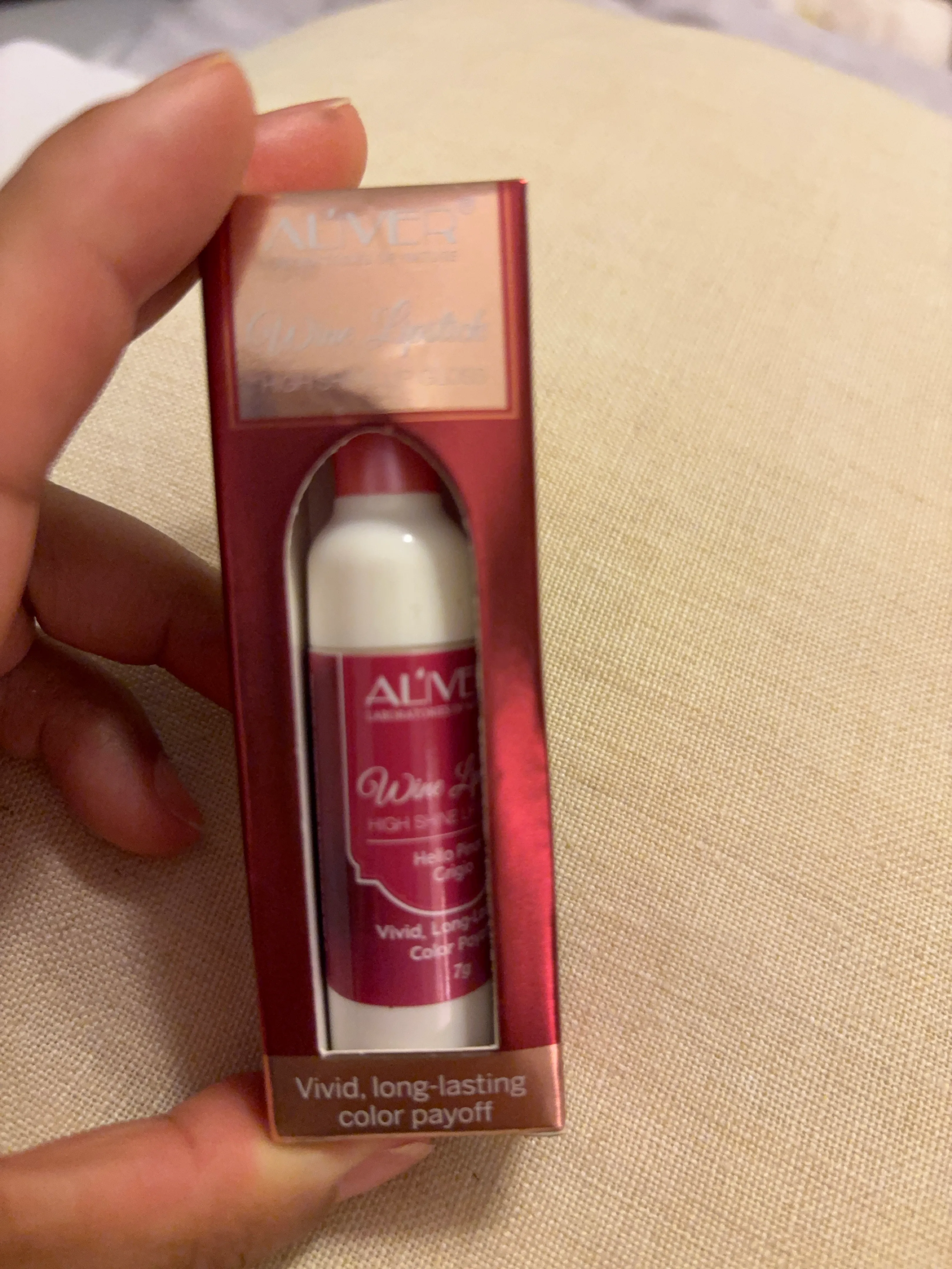 I am selling a lovely Aliver wine lipstick. The packaging looks like it is in good condition. It is the perfect size to put into your purse for a quick touch-up during the day.