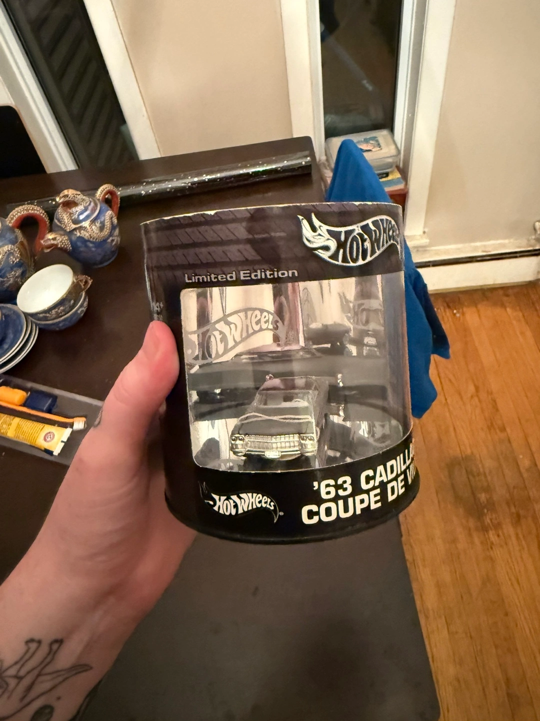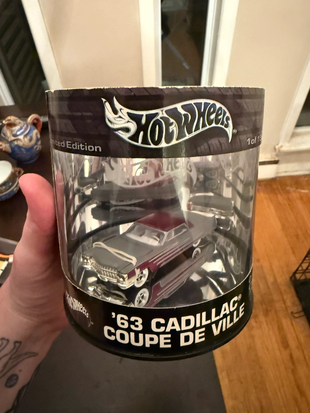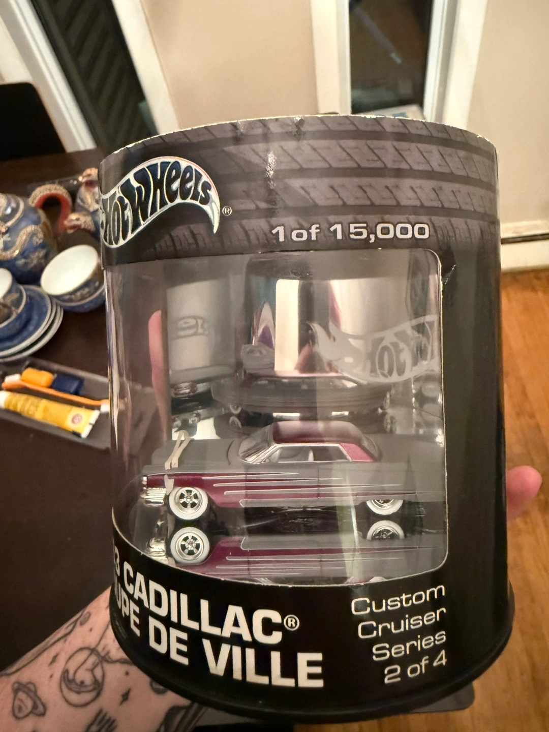 A limited edition Hot Wheels car in its original packaging. Custom Cruiser series, 2 of 4. The car sits in a clear plastic display case. This would look lovely displayed on a shelf for you to admire.