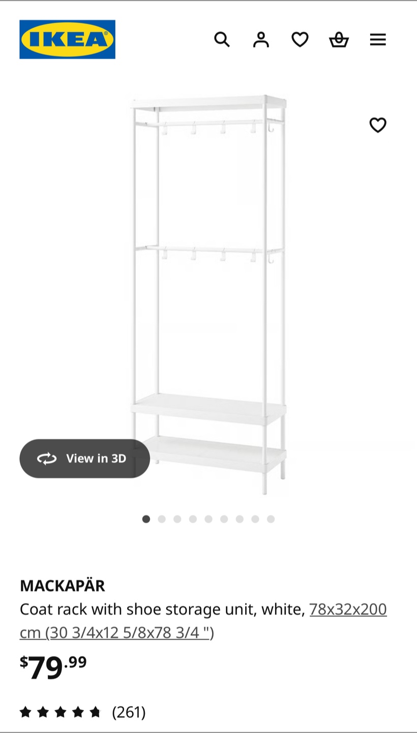 1 / 41 / 4Buy & SellIkea Shoe and Coat rackIkea Shoe and Coat rack$48A white, metal shoe and coat rack. Like new and in very good condition. Only available for pickup.ConditionLike newDimensions78x32x200 cm (30 3/4x12 5/8x78 3/4 ")WHERE TO MEETYonge Street & Davisville AvenueView MapSELLERverifiedSimranDavisville Village44946 reviews6 chats·4 favorites·309 viewsSEND CHAT TO SELLERHi Simran! I’m interested in your listing.Hi Simran! I’m interested in your listing.Get the Karrot app to chatSign In to chat