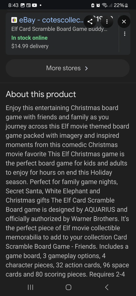The box features a very expressive image of Elf. A relaxing way to spend time with family and friends.