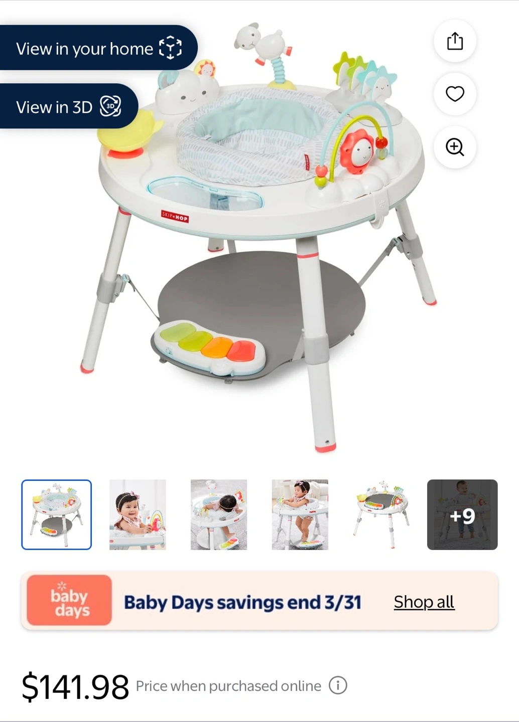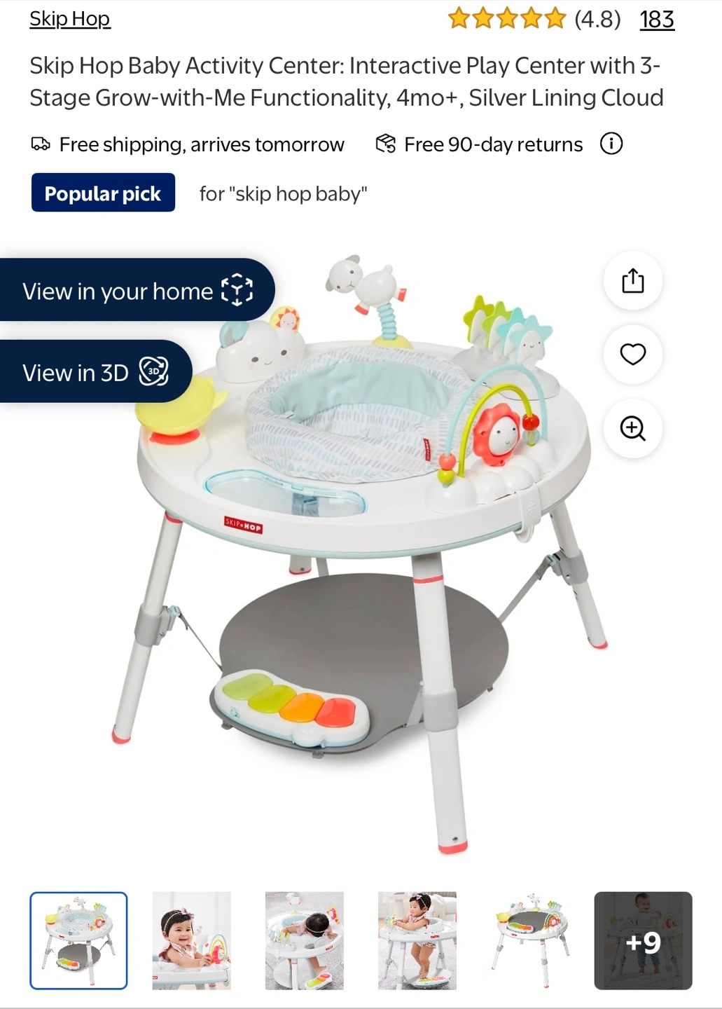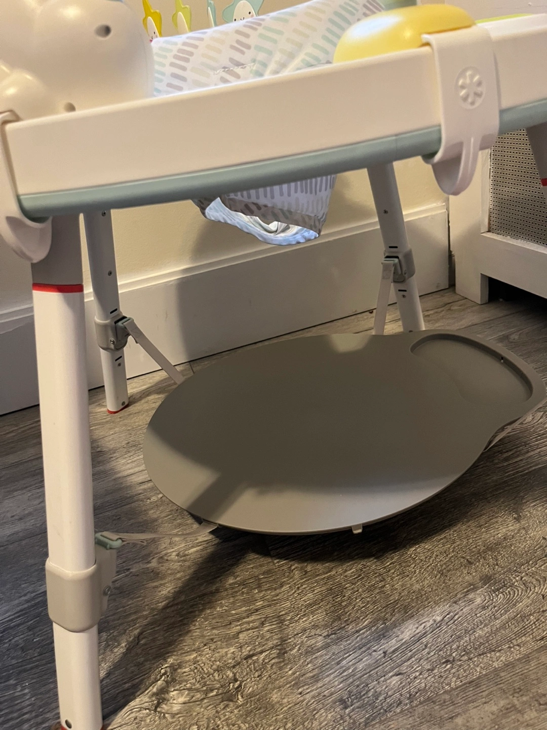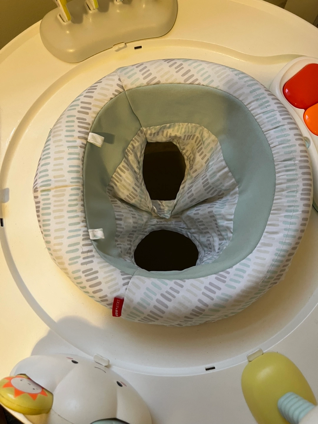 Activity center featuring interactive toys. The center has a padded, rotating seat. Includes toys and an activity platform. You can use this center to keep your little one entertained while you get things done around the house. Converts to a table when they outgrow the activity center. Comes with all original pieces and can begin to be used from the age of four months and up. Retail price $141, Cash only!
