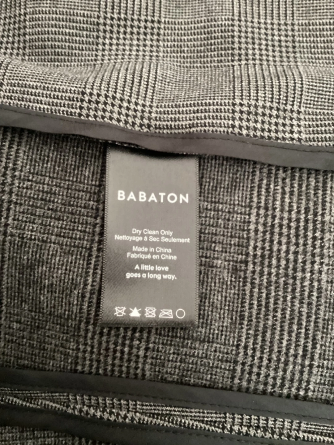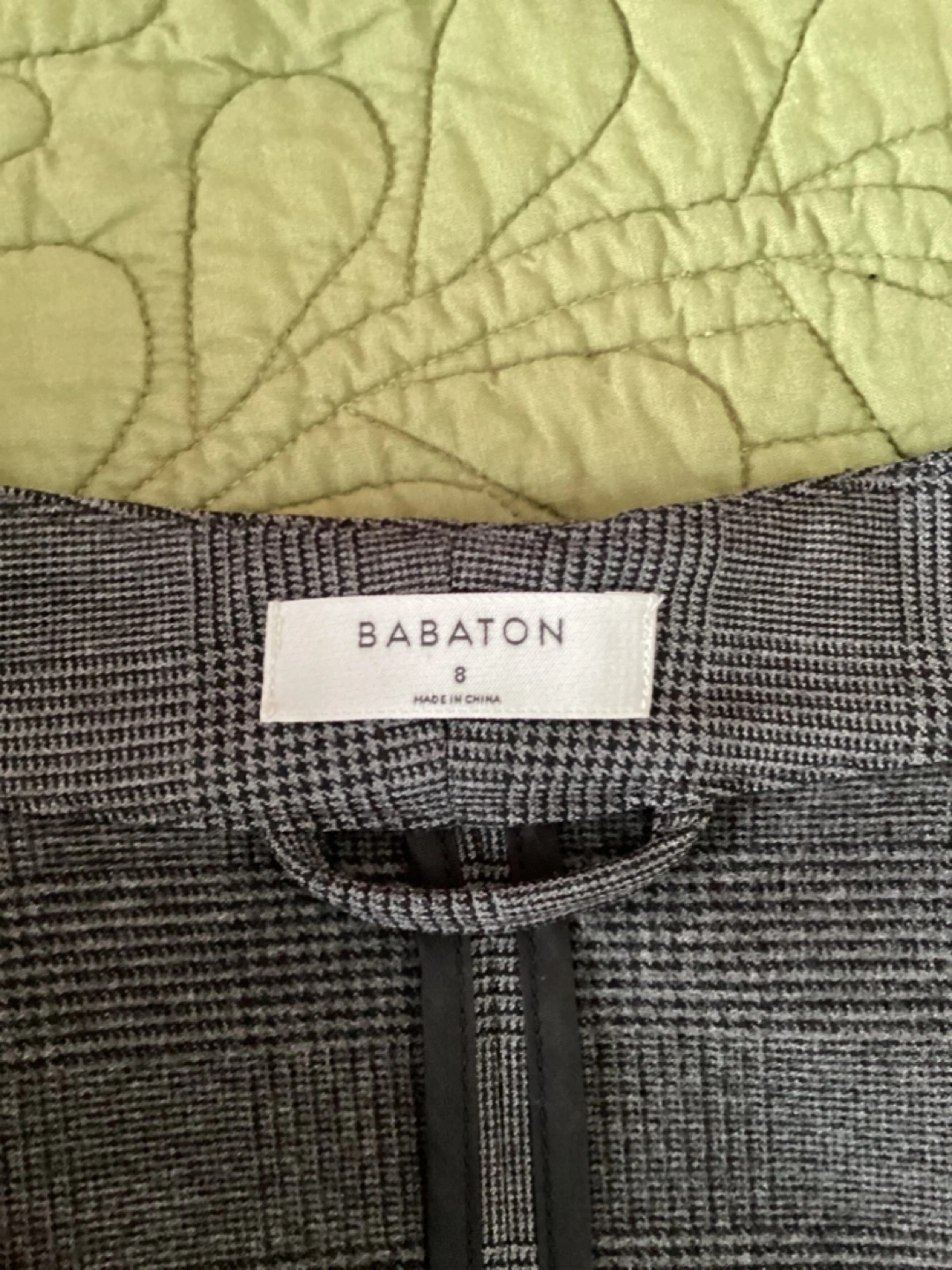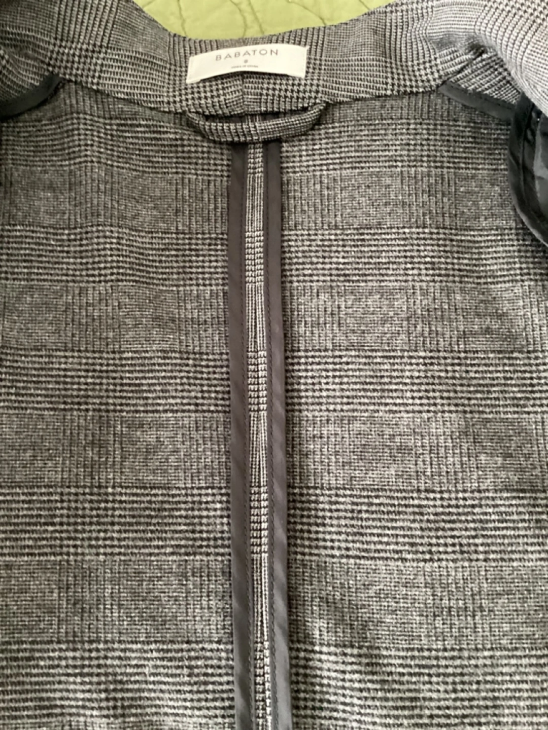 Babaton Grey Plaid Jacket, quality brand, like new condition, front is lined but back is unlined, shoulder pads, front pockets, 45% Polyester, 35% Rayon, 15% Acrylic, 5% Spandex. $100 or best offer.