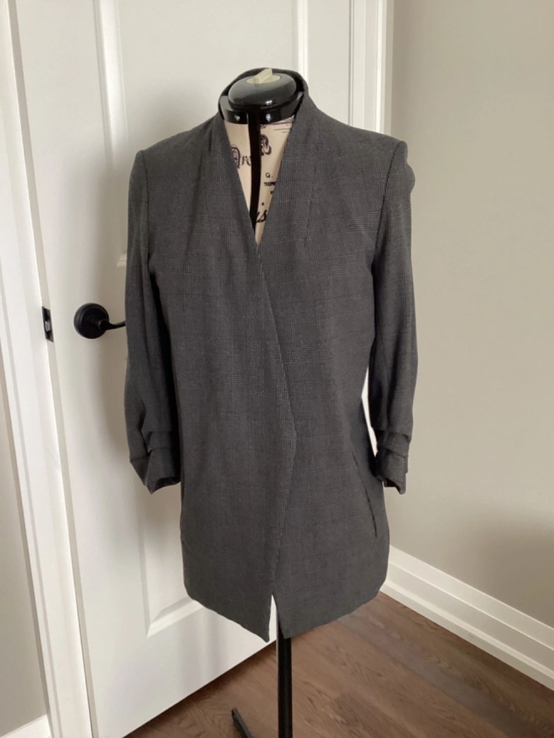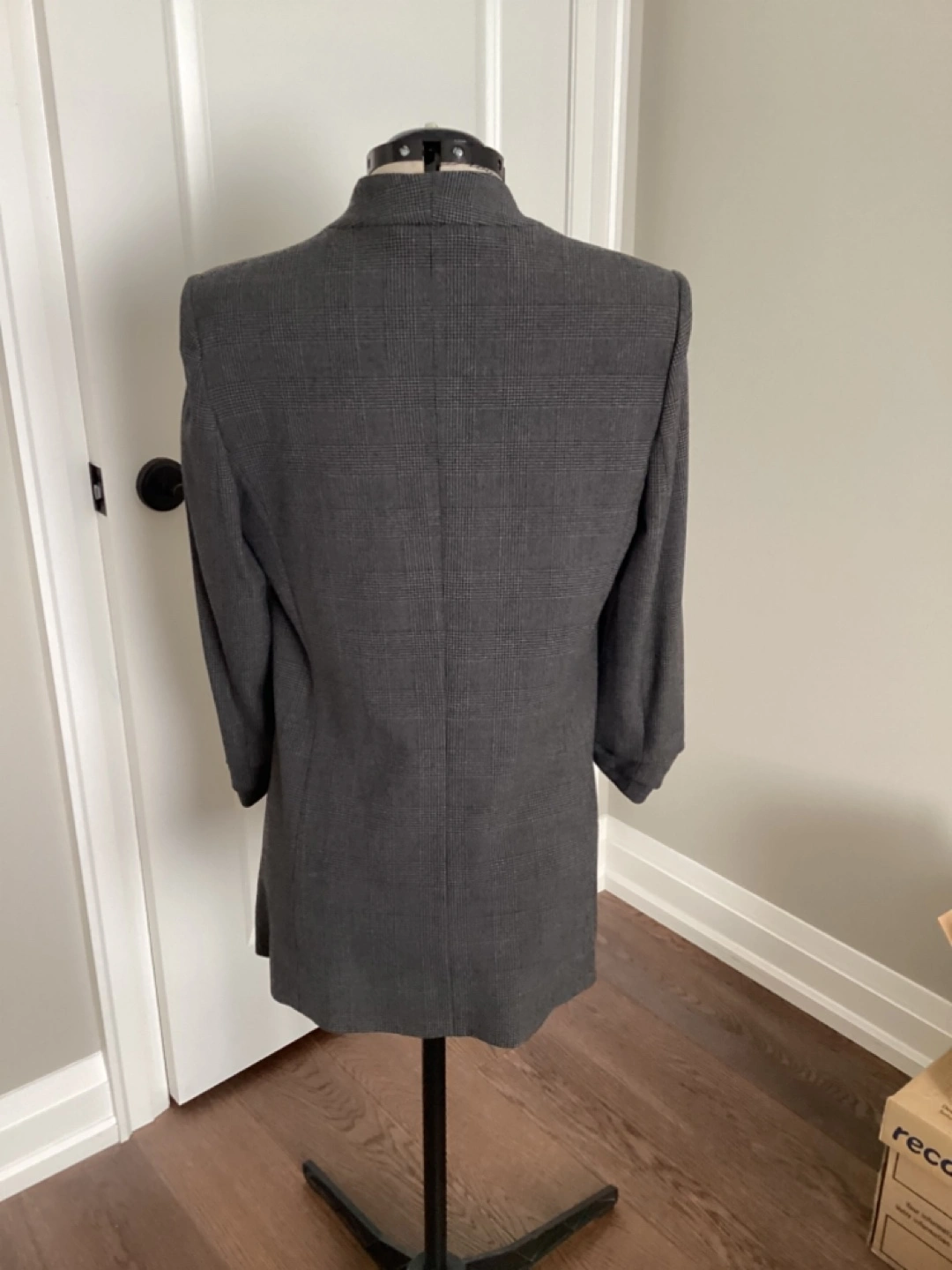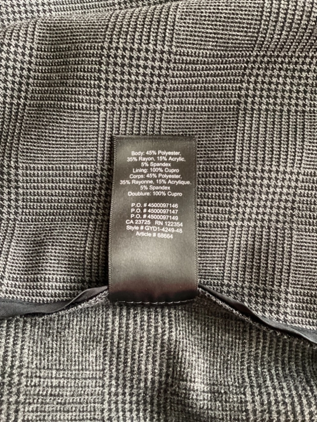Babaton Grey Plaid Jacket, quality brand, like new condition, front is lined but back is unlined, shoulder pads, front pockets, 45% Polyester, 35% Rayon, 15% Acrylic, 5% Spandex. $100 or best offer.