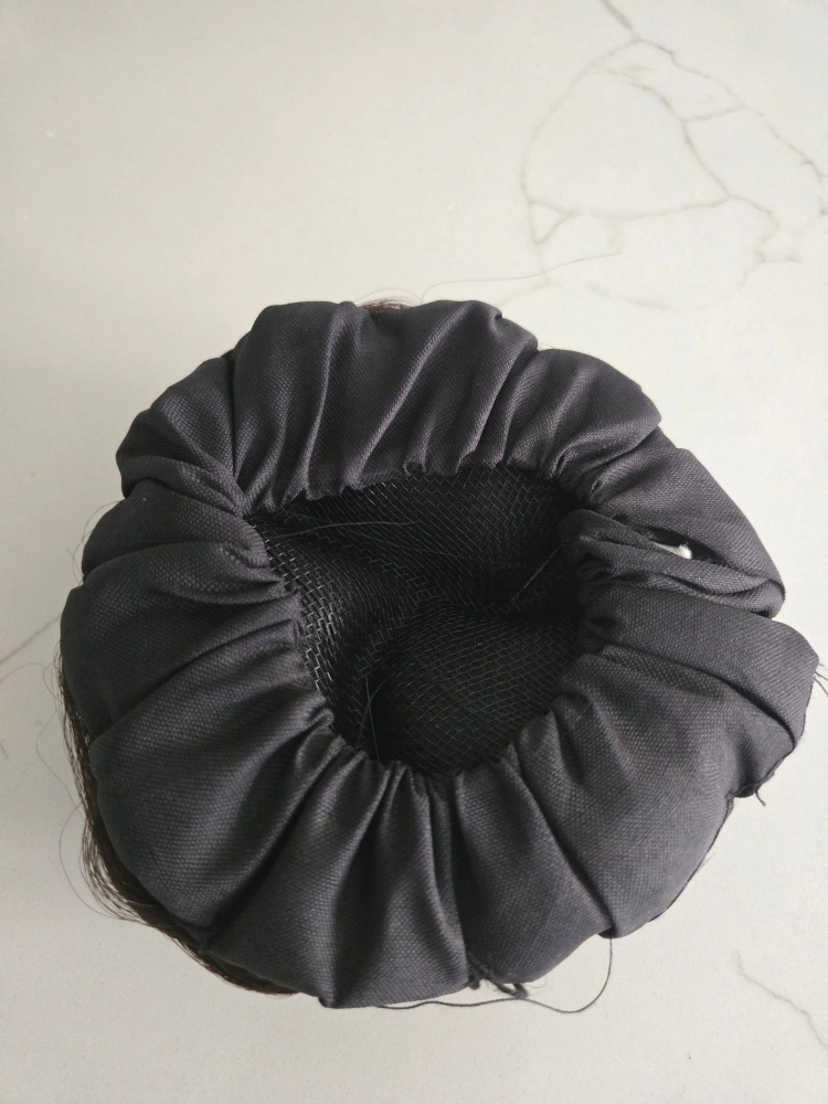 118This hair piece is a dark color. The bun has a fabric and netting base. It will give you a polished look in seconds.