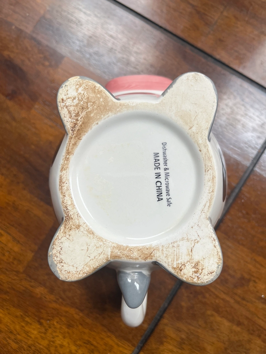 - Bottom of the mug is also scratched up and turned brown (see photo 4); unable to rid of it