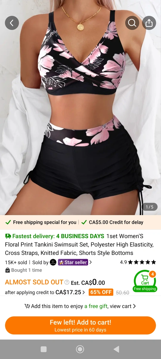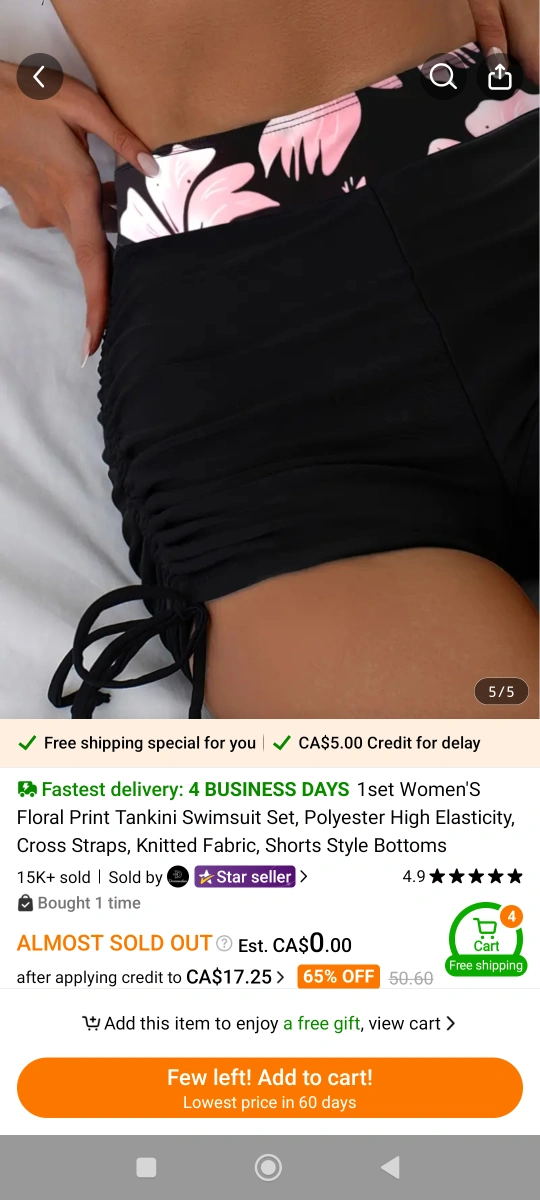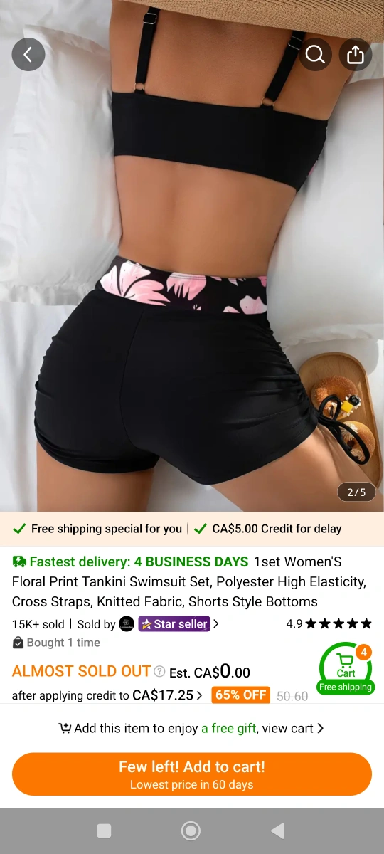A comfortable tankini set featuring a floral print. Includes a top and shorts style bottoms. This set would be perfect for your next relaxing beach trip.