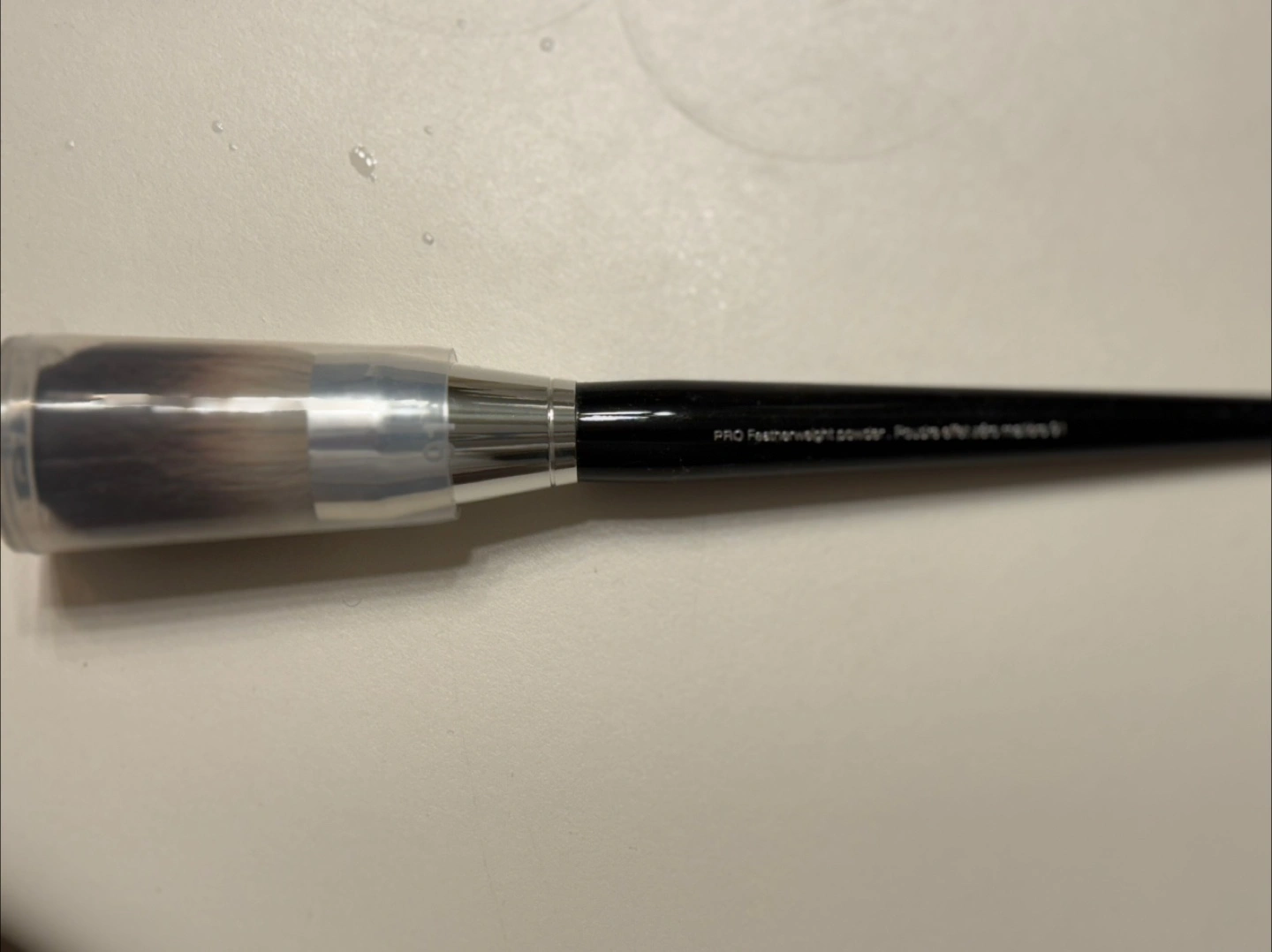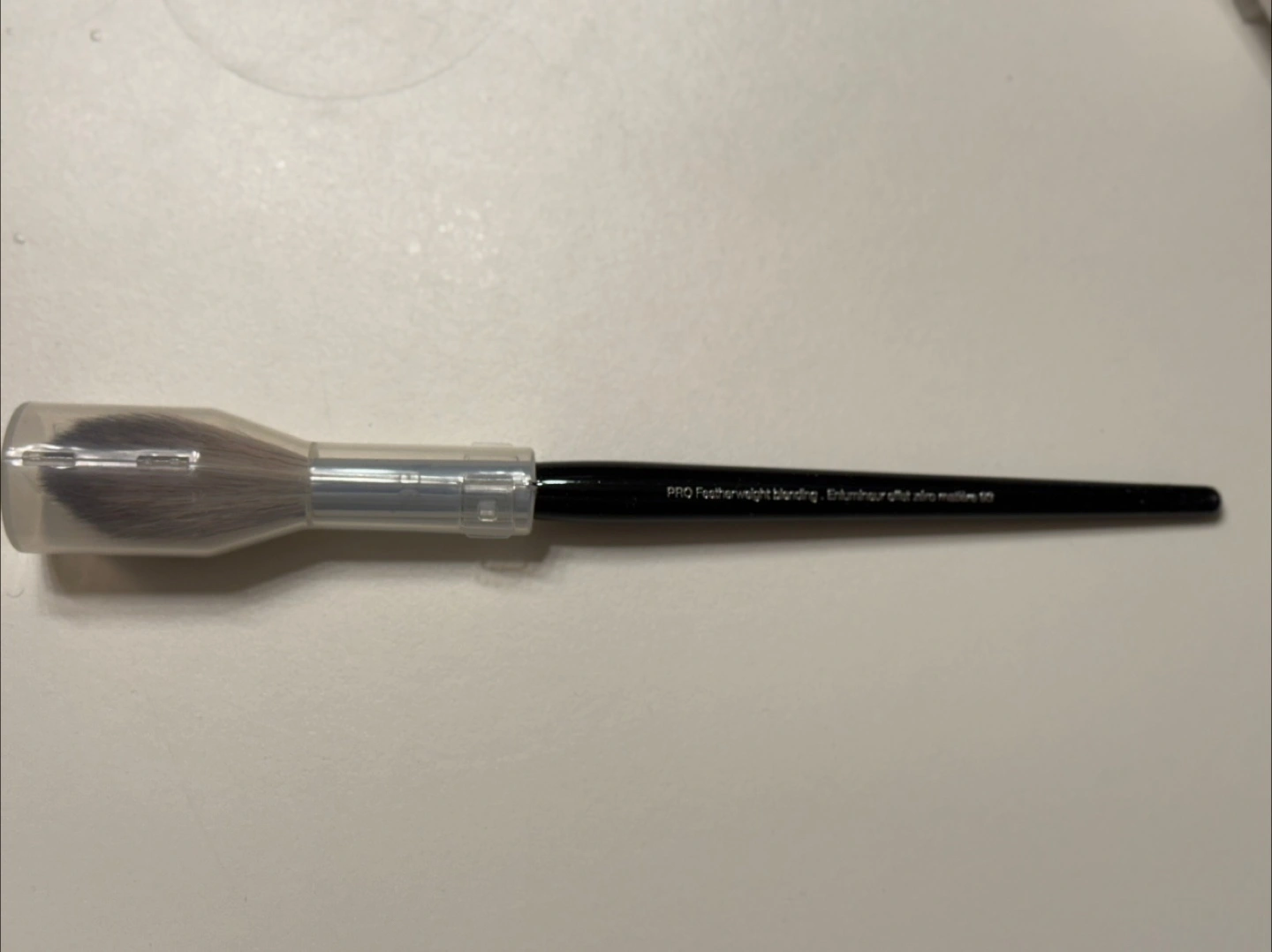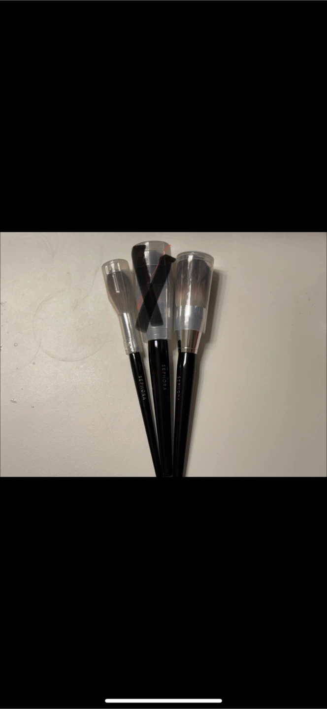 Black handles and soft bristles make up brushes. They each have a cap for protection.
