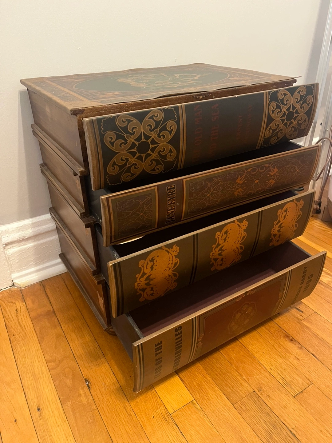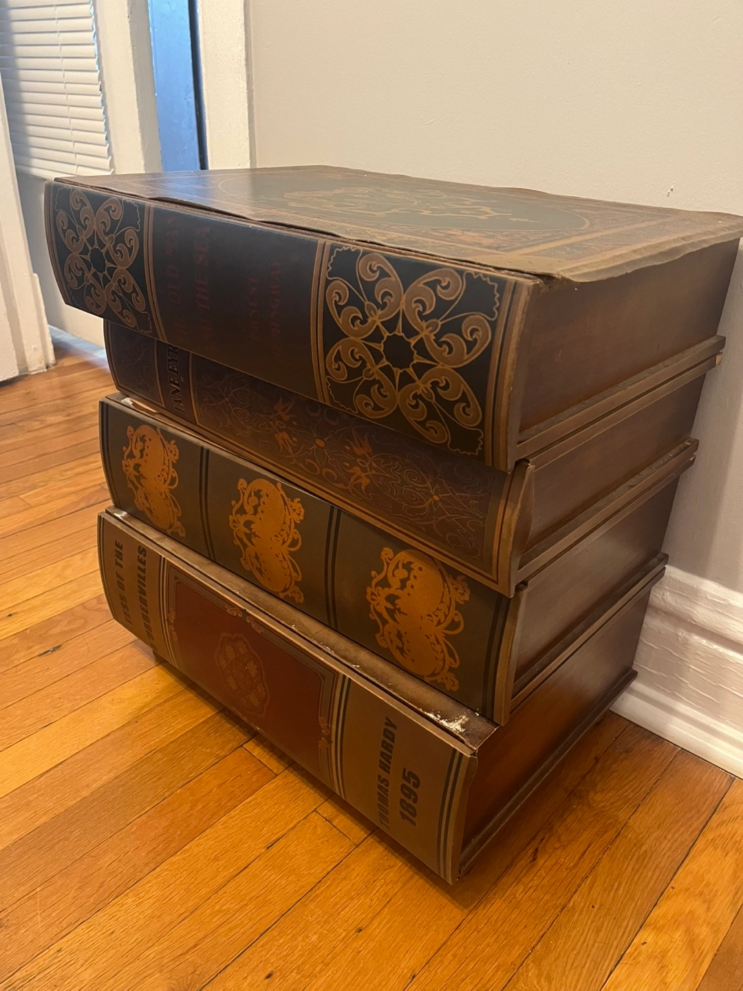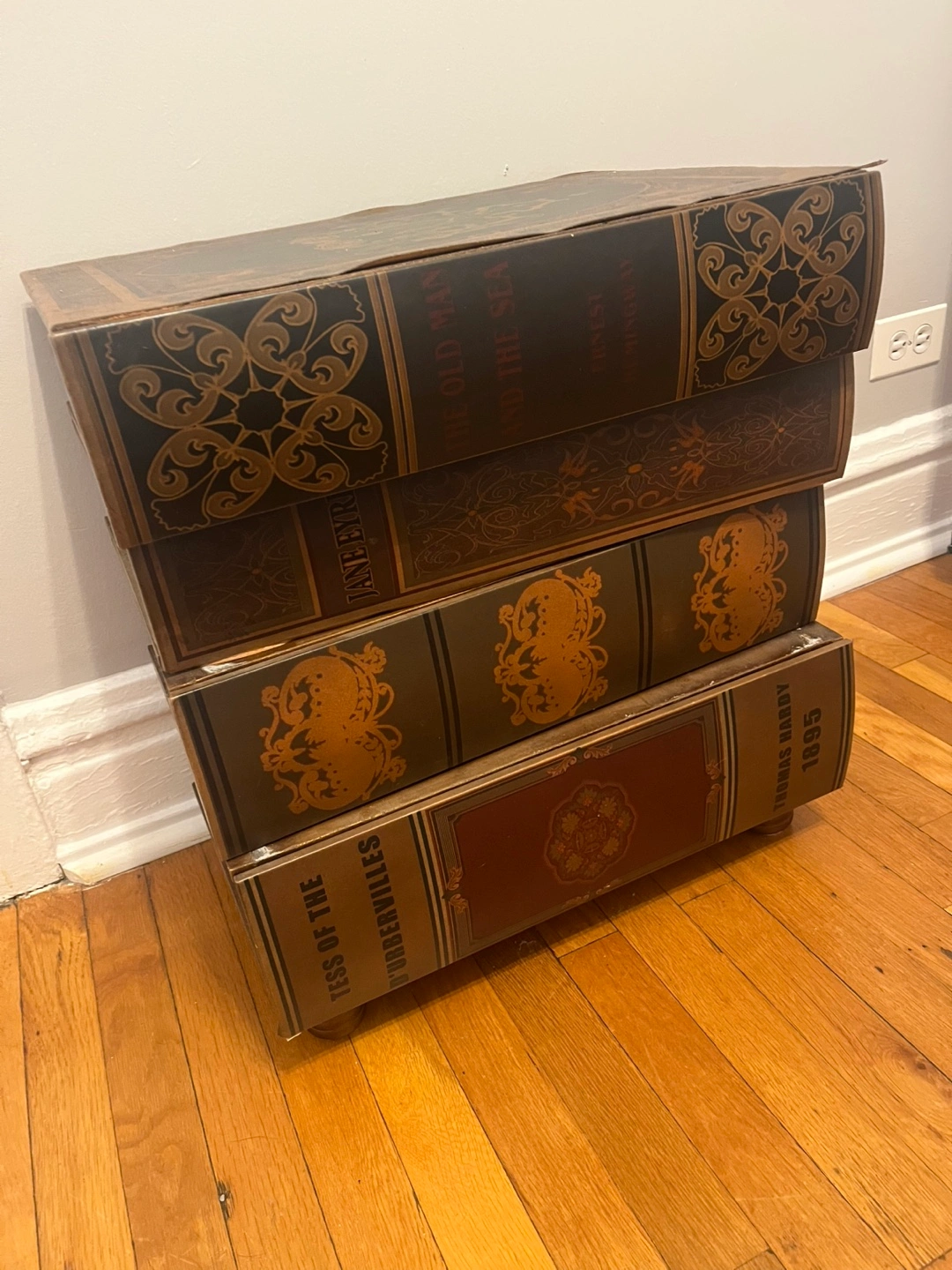 A wonderful piece to add some character to a room and store your items in a unique way. Can be used as a night stand or as a living room side table. As you can see, the top trim is lifting, but it can likely be glued with wood glue. Sold as is. Porch pick up only. Thanks!