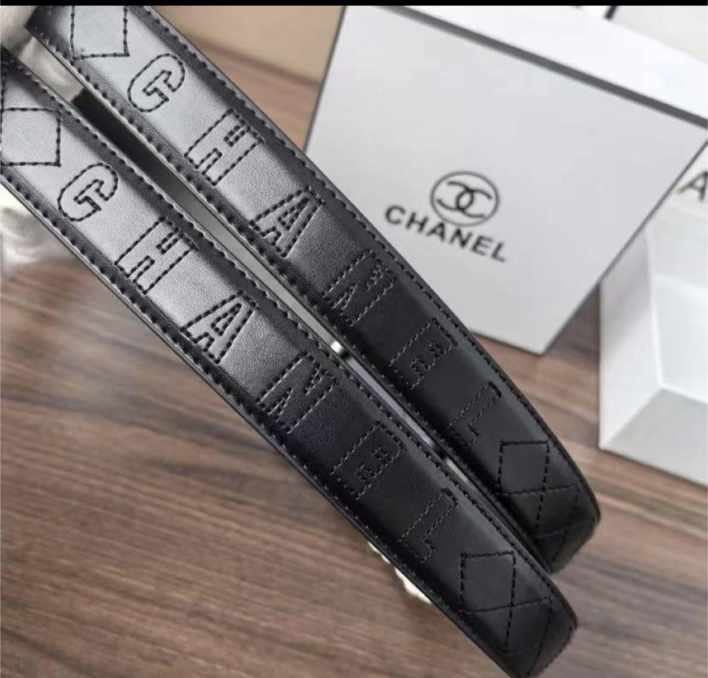Black leather belts with stitched detailing. Features the Chanel logo. Perfect to match with your favorite pair of jeans, ensuring both style and comfort.