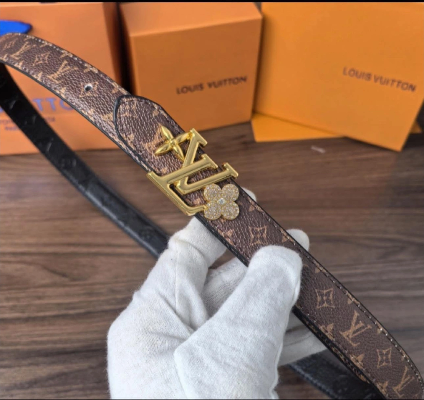 The belt is a stylish brown color. Features a golden buckle. A great accessory for any outfit, providing an effortless touch of elegance.