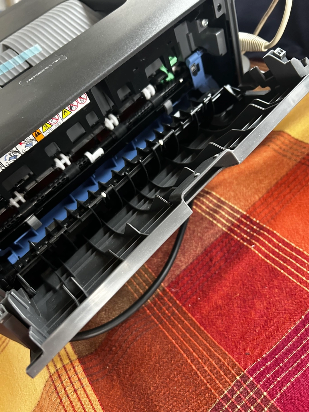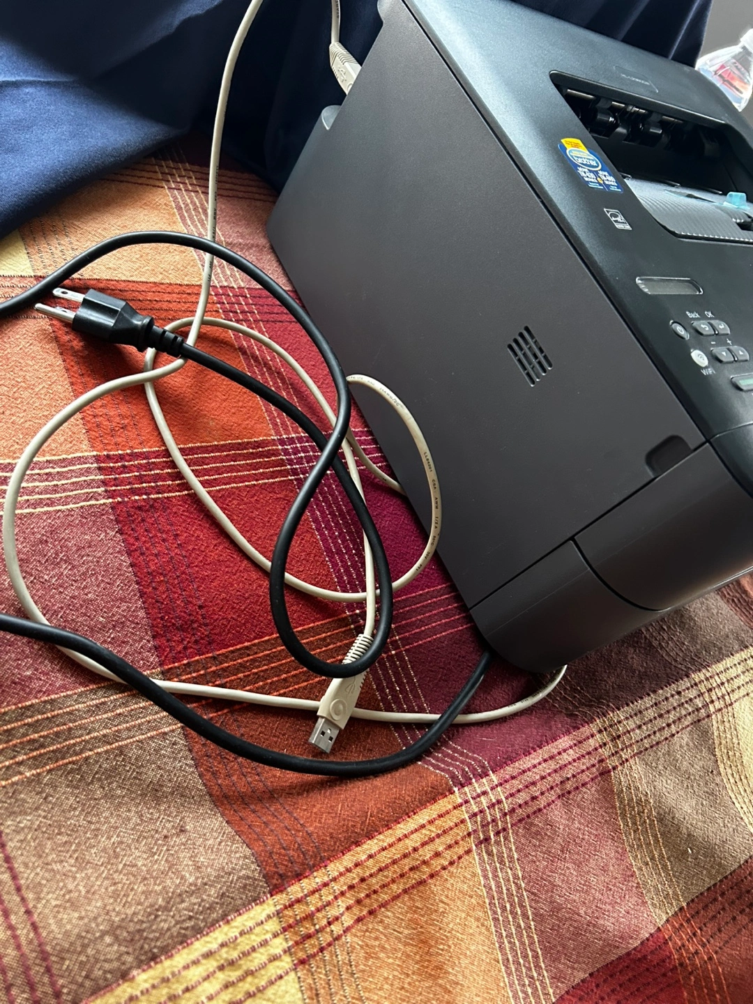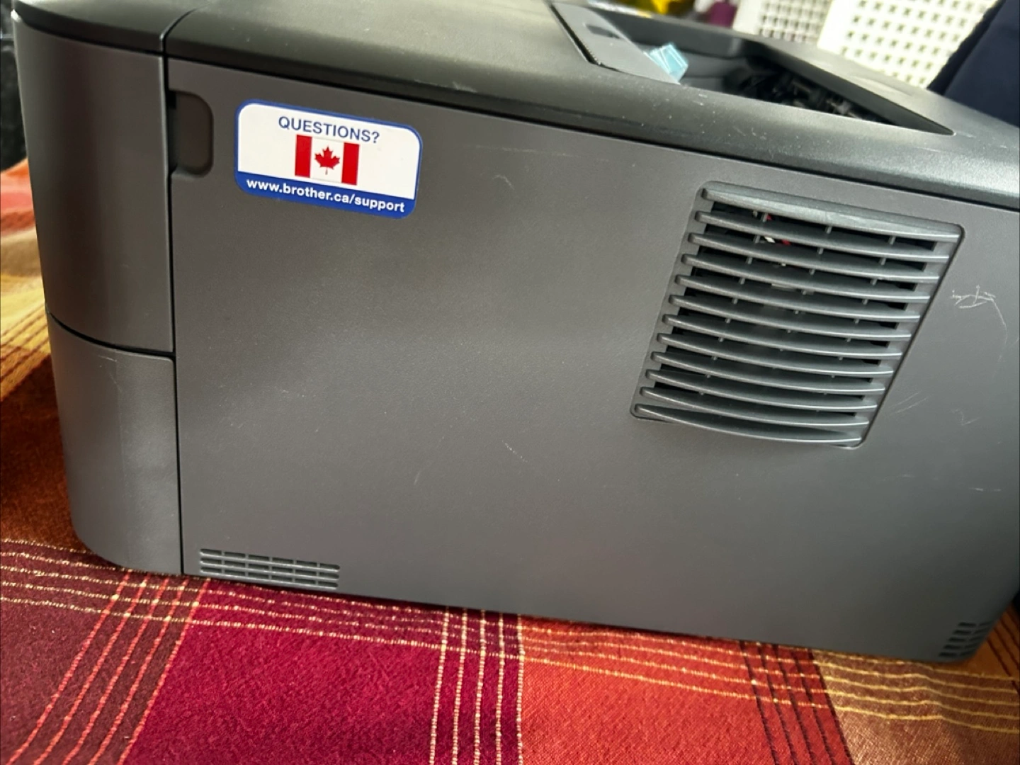 A printer in a neutral colour. Some scratches are visible. Buttons are located on the front. I hope this item will meet your needs and bring you a sense of calm as you work.