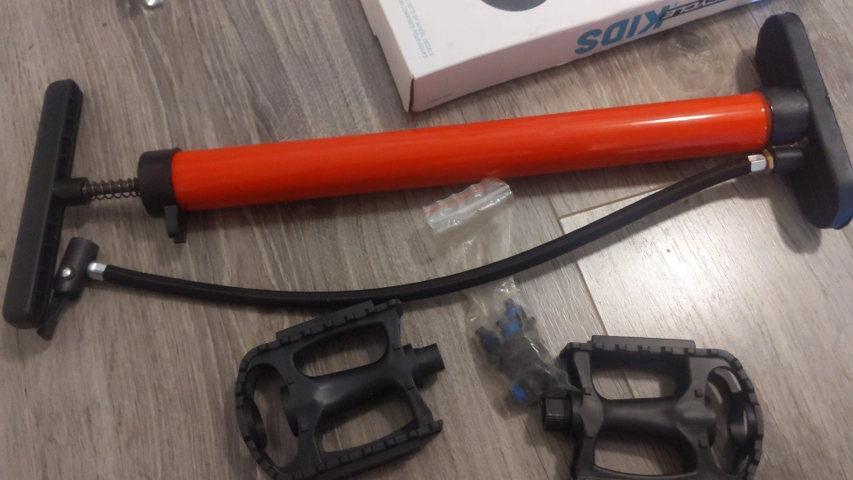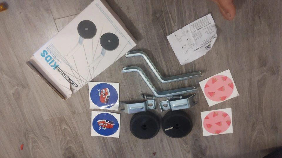 Includes a bicycle, training wheels, and various other accessories. Comes with stickers. A great way to get your child outside and have fun.