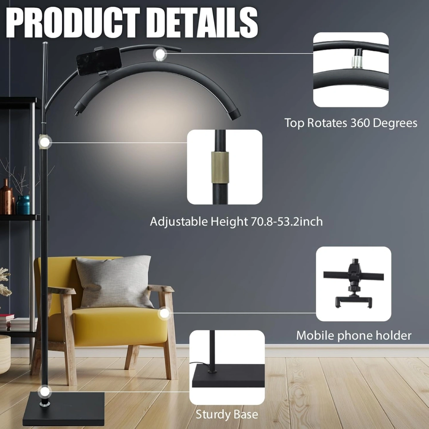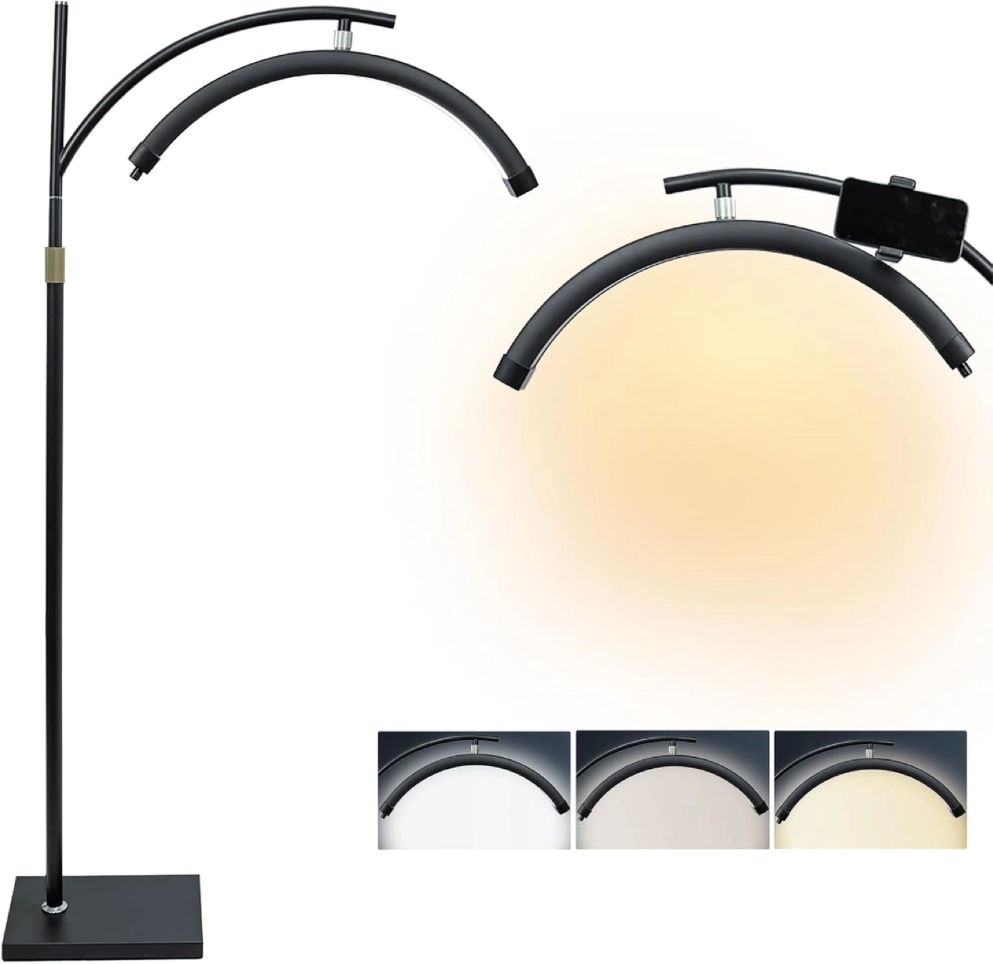 Adjustable LED Floor Lamp with Phone Holder
