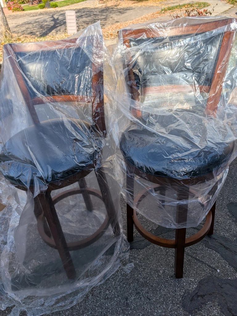 *New* Assembled Pair of SOLID WOOD / Leather Bar stools