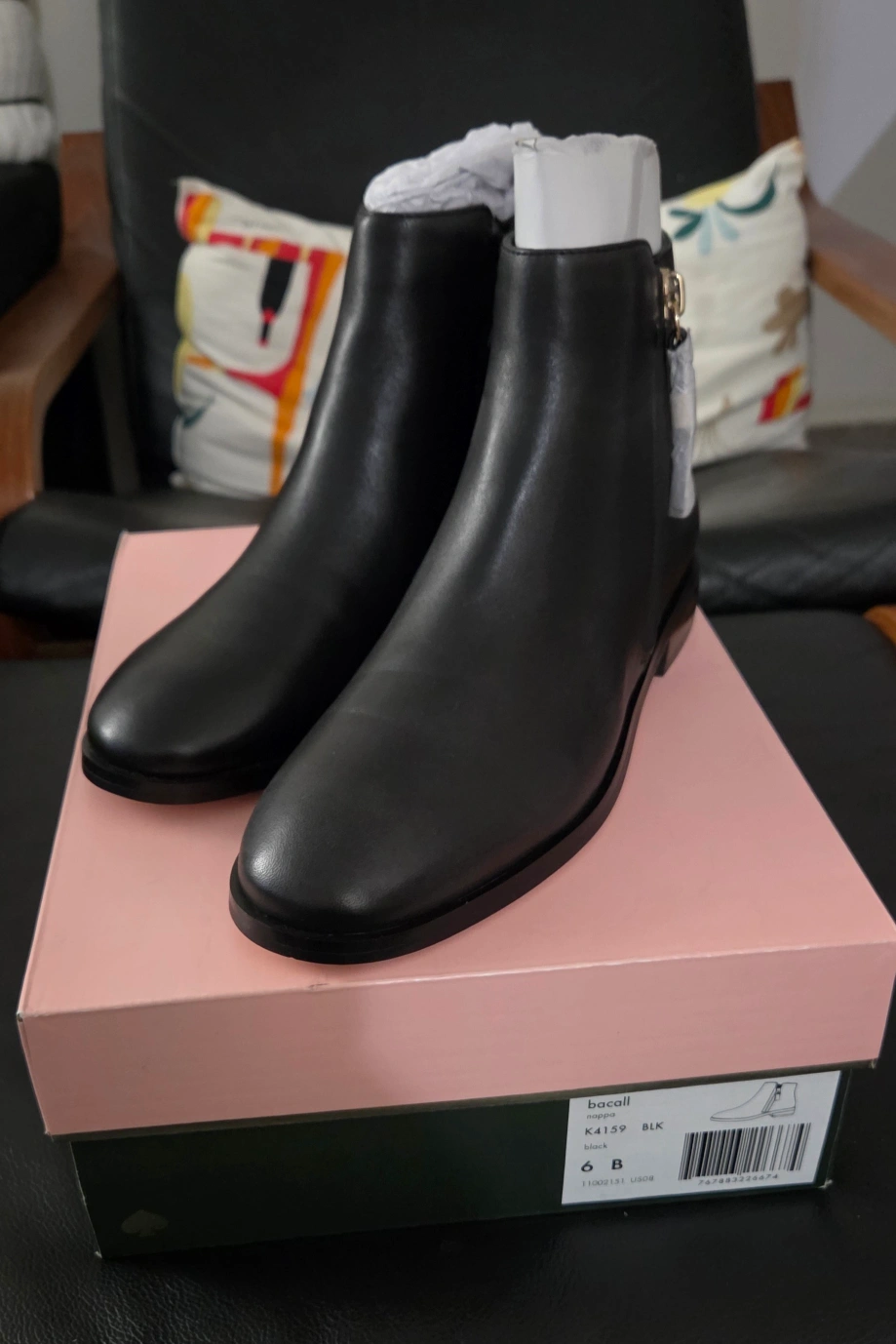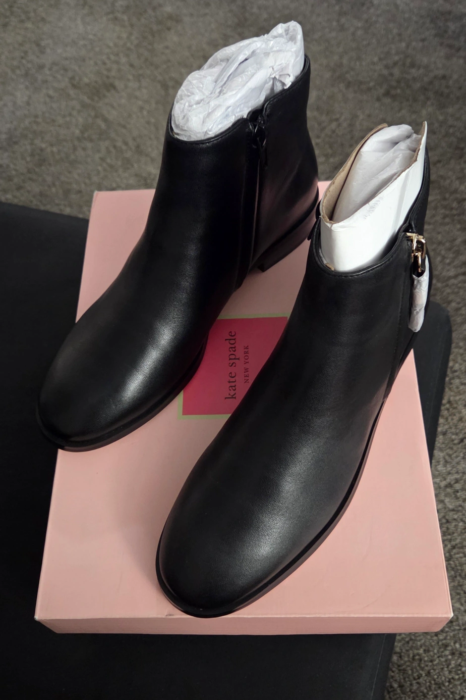 Black ankle boots. New condition and come with their original box. A great find for anyone wanting to elevate their look while staying comfortable. No try on please.