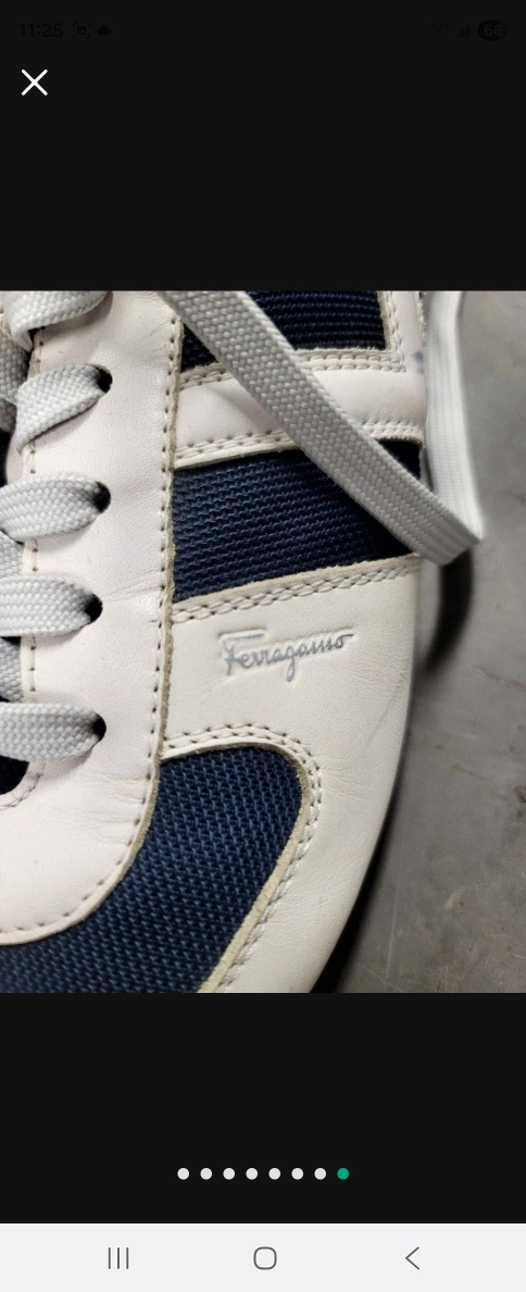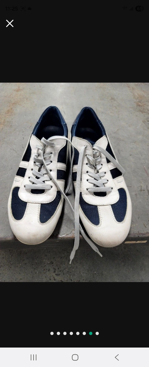 Sneakers with white and navy blue details. White laces. Made in Italy. You can wear them on your way to a relaxing walk.