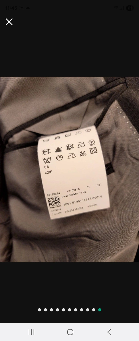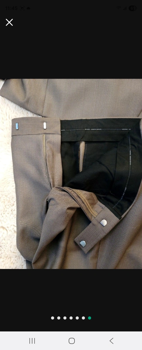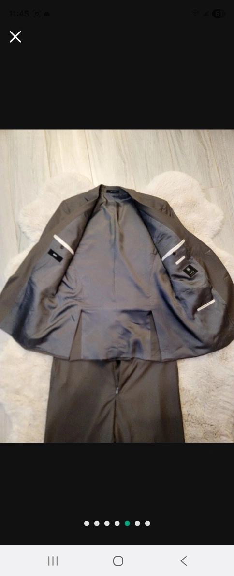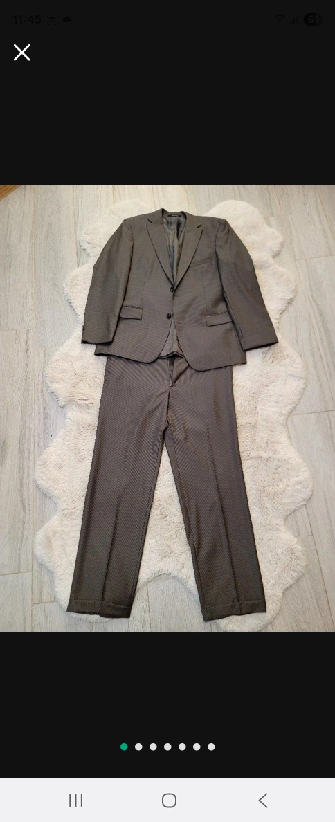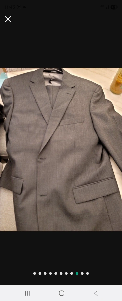 A stylish two-piece suit. Features a tailored jacket and matching pants. The jacket has pockets and buttons. The pants have a classic cut. Consider wearing this suit to your next special event; you will look great.Size 42R