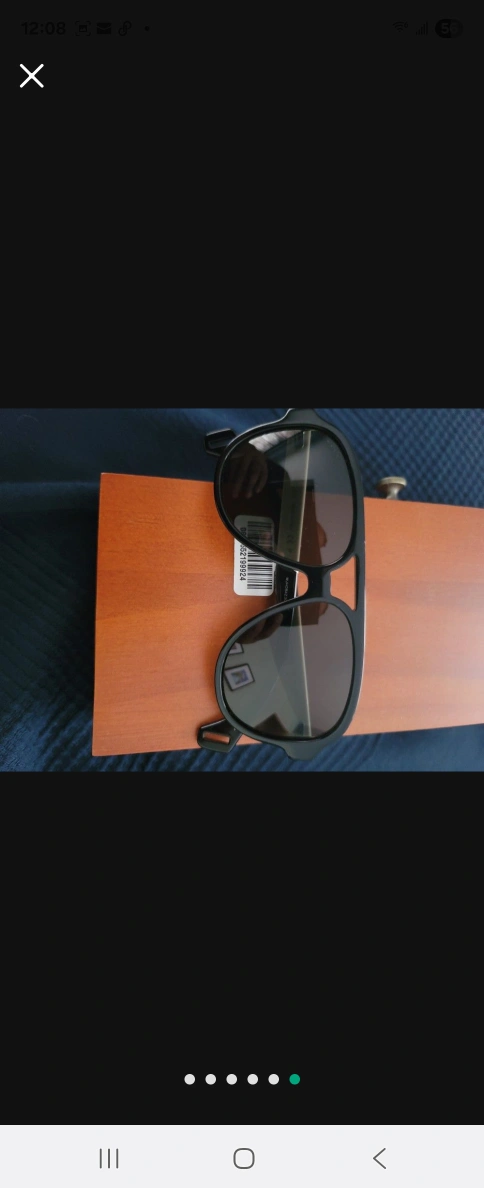 Sunglasses with dark lenses. Black frames. The brand's name displayed on the frame. They could be the perfect accessory for a day out in the sun.