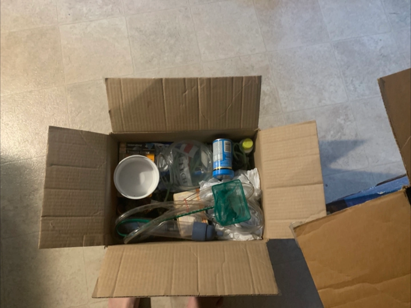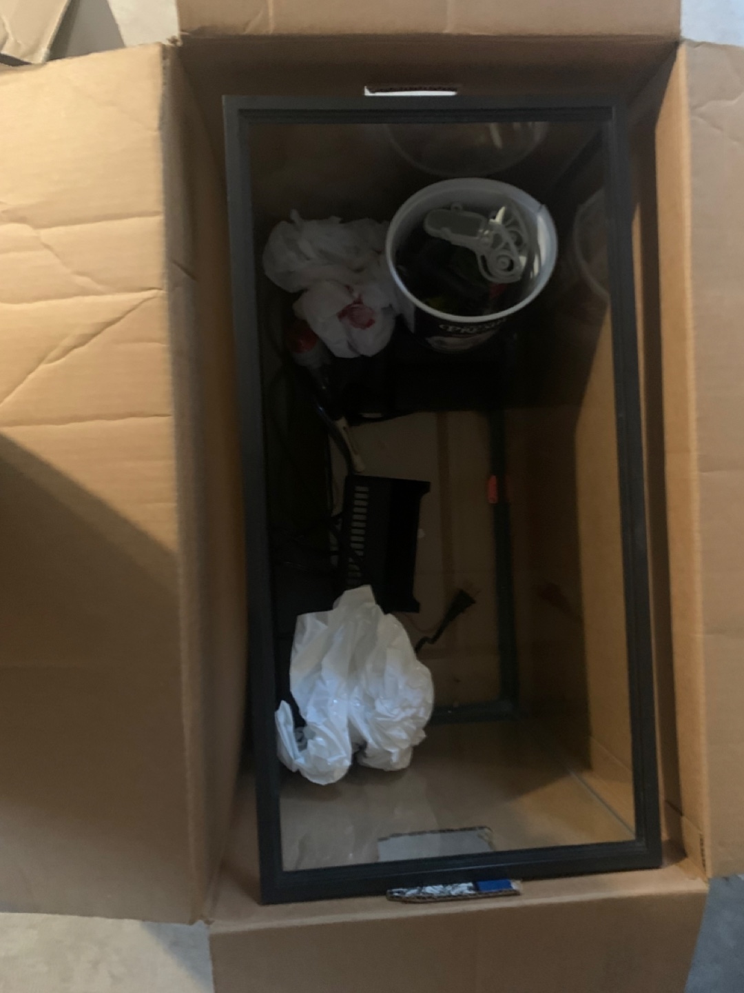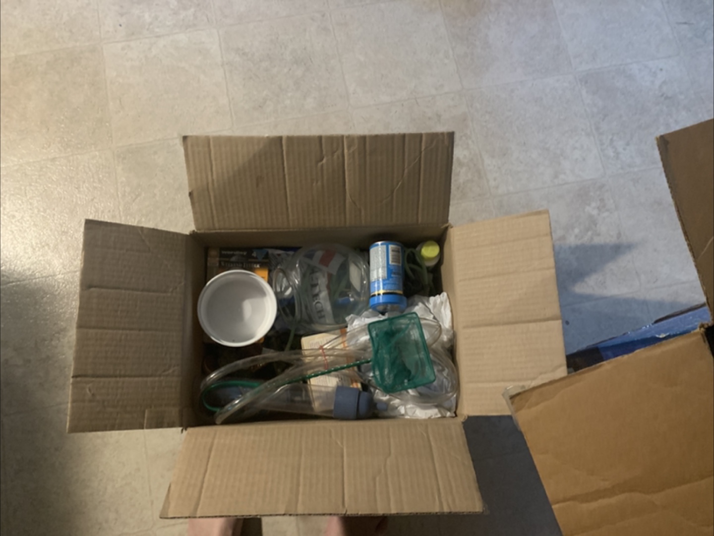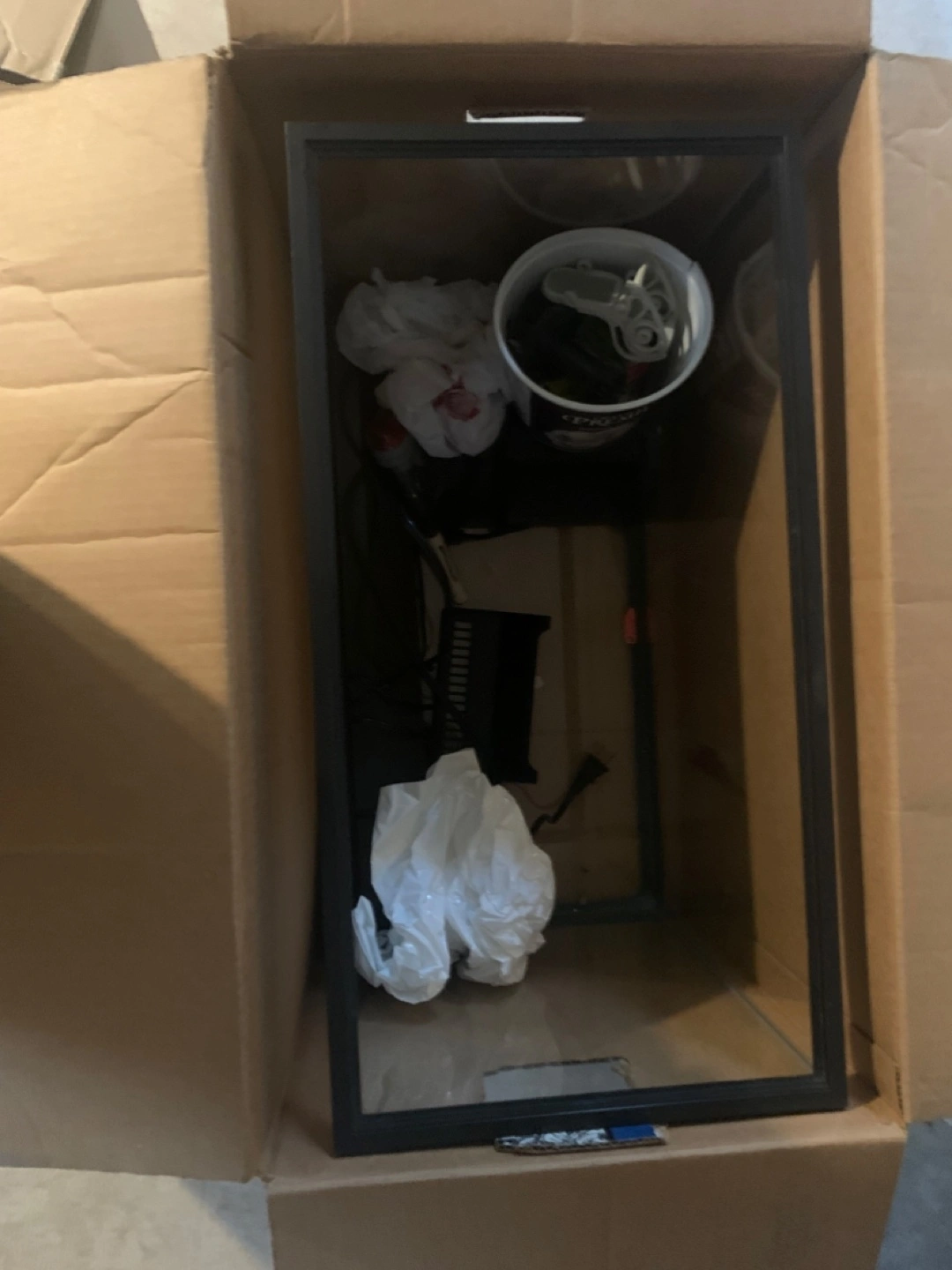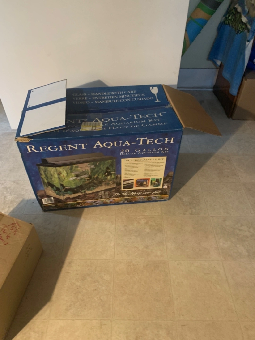 Here is a 20-gallon aquarium kit. The box contains a glass aquarium, accessories and the filter unit. It is perfect for a wide variety of fish to live peacefully. Gravel not included. Everything was in working order when put away.