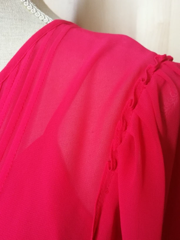 Sheer flowy fabric, light weight 3/4 length sleeves