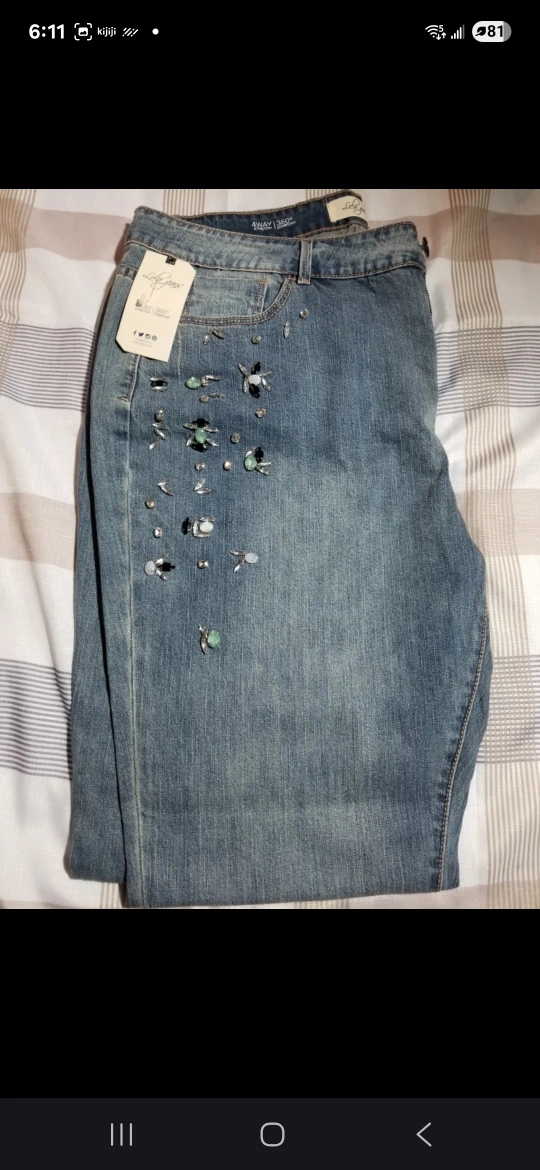 Lola Jeans size 38/20 high waist. Embroided thighs. Details: These jeans have rhinestones and beads on the front thighs. Jean's fabrics are blue with faded looks. Fratures: Lola Jeans is a sustainable denim brand offering timeless designs that are authentically rooted in denim fashion designs. Driven by a circle economy. Pick Ups: 1. Tim Hortons at Jane Park Plaza 2. Any subway station from Kipling to young and Bloor station Note:The original price is way more + Tax Here Price is the lowest/firm to go away faster. If you like, please call/ text for a faster response. 647 855 6217 NOTE: If u like, please see my other ad postings. like,leather shoes, dress shirts,pants, jeans, Tennis/Squash Rackets, Exercise/Bike stuff, and more….. Mostly, brand name stuff is new or in the new condition to go away in about half price. Thanks for your time.