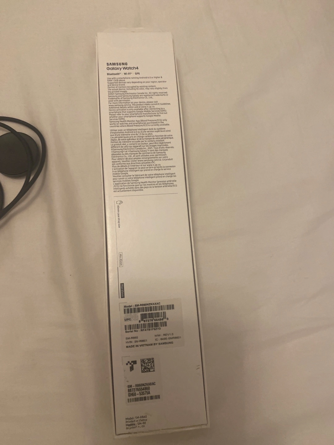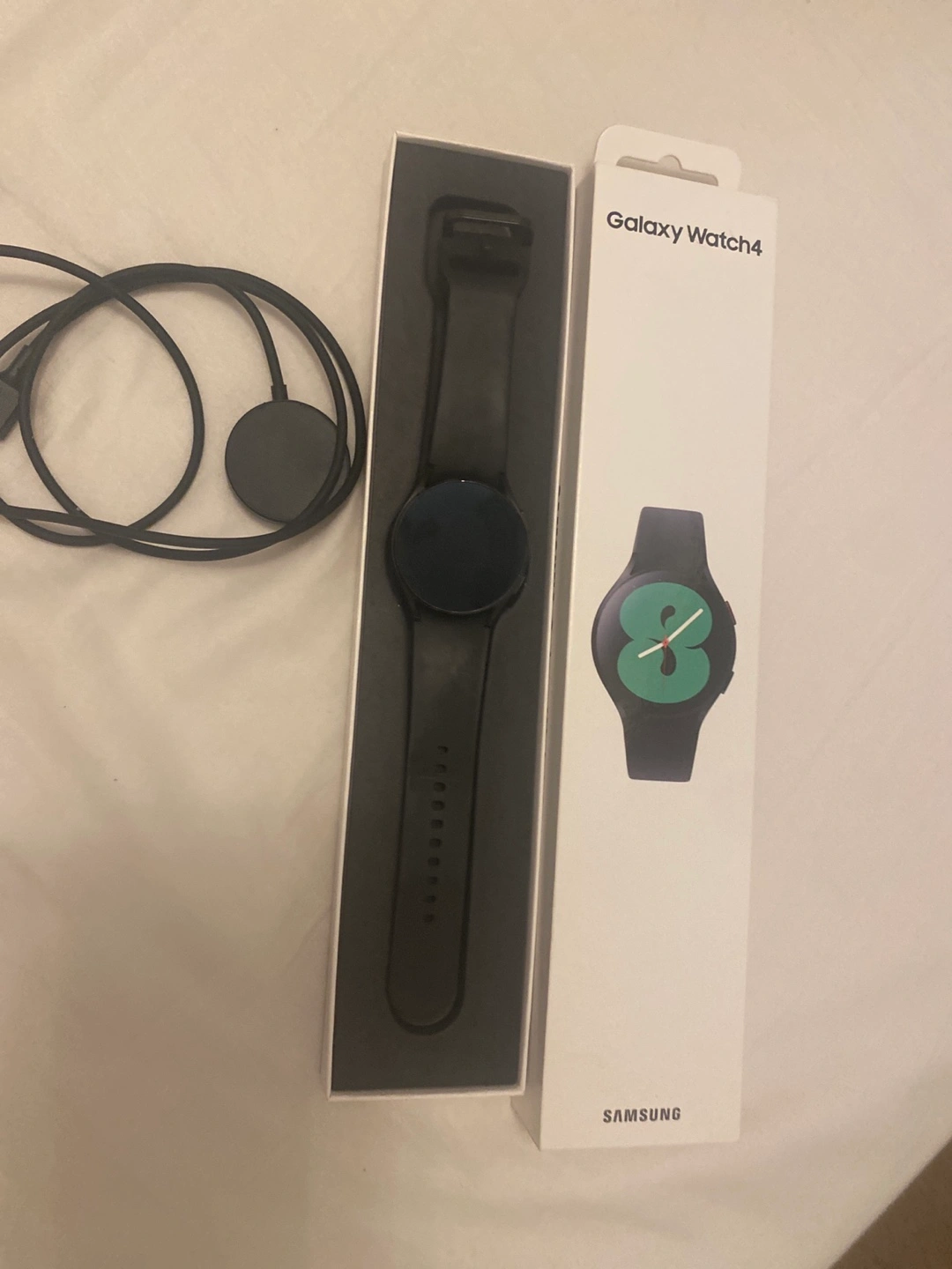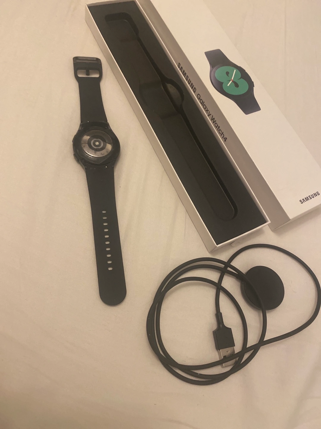 Smartwatch, with a black strap. The watch has a circular watch face. It comes with a charging cable and the original packaging. It will allow you to keep an eye on things, making it the perfect everyday companion.