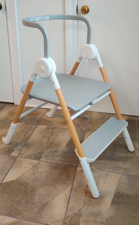 Versatile 2-in-1 Design: Our Sit-To-Step High Chair transitions from a highchair to a toddler kitchen helper, adapting to your child's developmental stages and offering grow-with-me functionality.