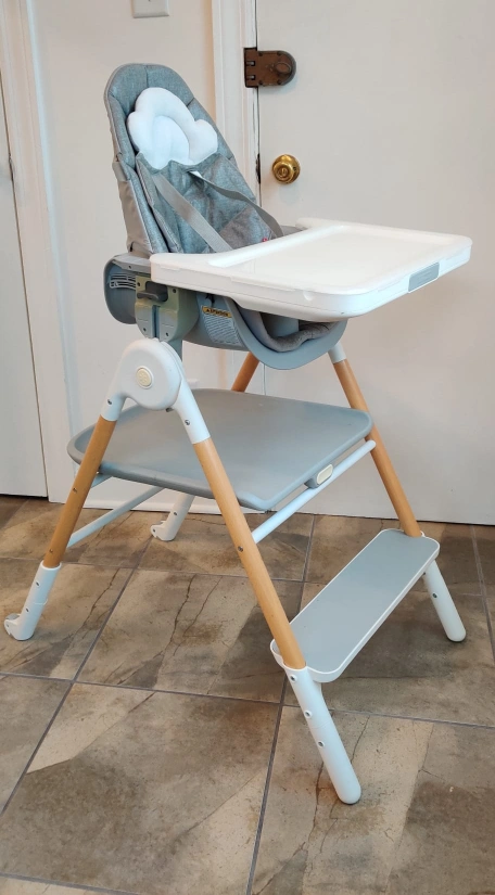 Space-Saving and Foldable: Designed with modern living in mind, this high chair easily folds for storage when not in use, making it a convenient solution for modern homes. Includes infant seat insert and soft head support.
