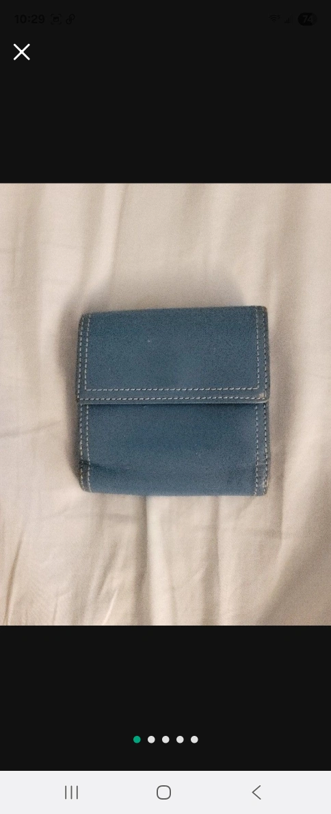 A beautiful blue wallet, with a snap closure. Featuring a card holder and coin purse. This wallet is just what you need to keep your things safe.