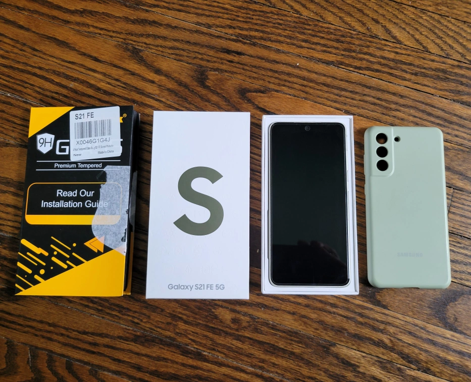 Samsung Galaxy S21 FE 5G Olive 128GB - 6.4" Excellent condition android phone and case, no marks or damage. Always have a screen protector and case on it so there's not a single scratch. Fully functional with no issues. Only selling because I've upgraded to a new device. Includes: - UNLOCKED mobile phone - Genuine Samsung box - Original Samsung charging cable - Official Samsung cell phone case in the same olive green colour - 3 new tempered glass screen protectors plus there is one already on the cell phone Pick up at College and Shaw. Check out my other listings that might be of interest.