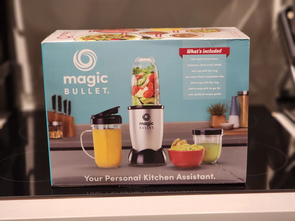 The Magic Bullet is a versatile blender for your kitchen. It includes several cups and lids, perfect for making smoothies or other creations. Take a break from a busy day to enjoy a freshly blended smoothie. 11 piece set.
