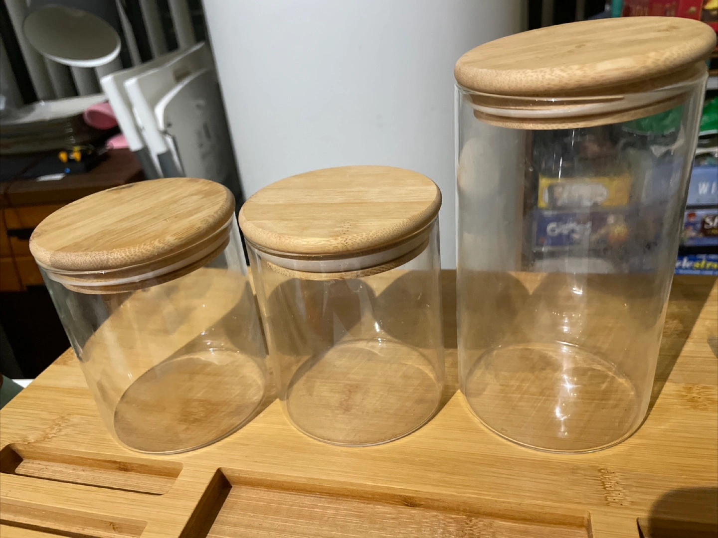 Clear glass containers with wooden lid