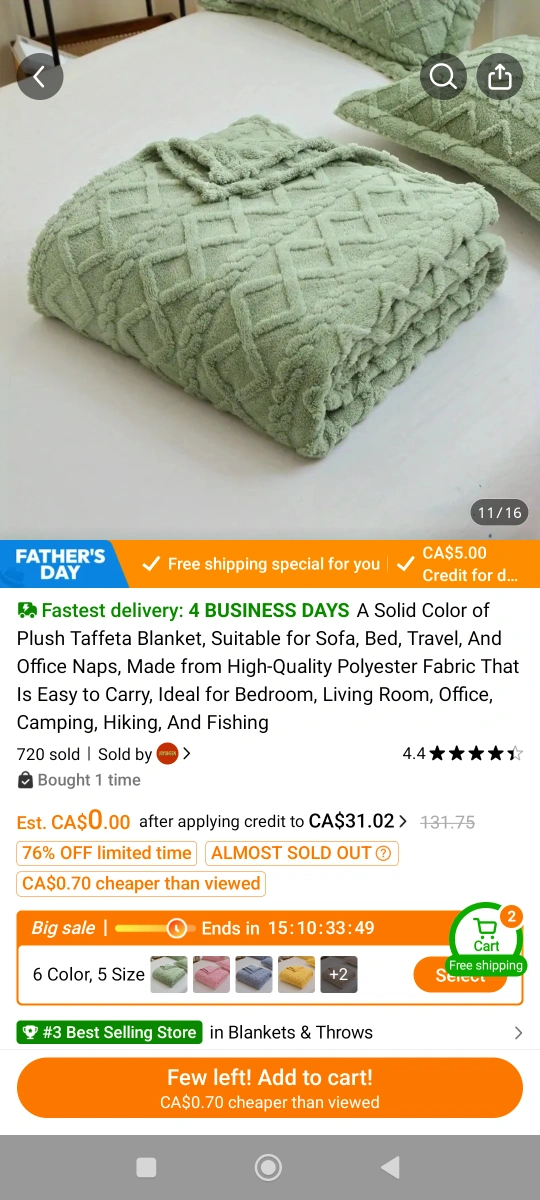 New Green Plush Taffeta Blanket