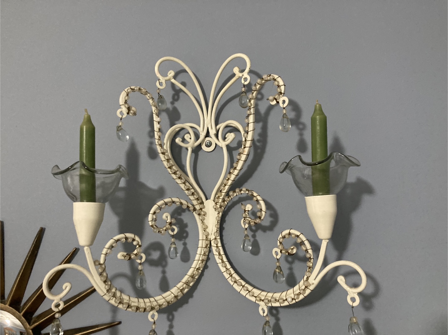 1 / 51 / 5Buy & Sellwrought iron white candle sconceswrought iron white candle sconces$16.20Beautiful antique wrought iron wall candle sconces with beadsConditionLike newDimensionsAbout 14 by 14 inches WHERE TO MEETCheck LocationView MapSELLERVeraHermosa342 reviews1 chats·1 favorites·35 viewsSEND CHAT TO SELLERHi Vera! I’m interested in your listing.Hi Vera! I’m interested in your listing.Get the Karrot app to chatSign In to chat